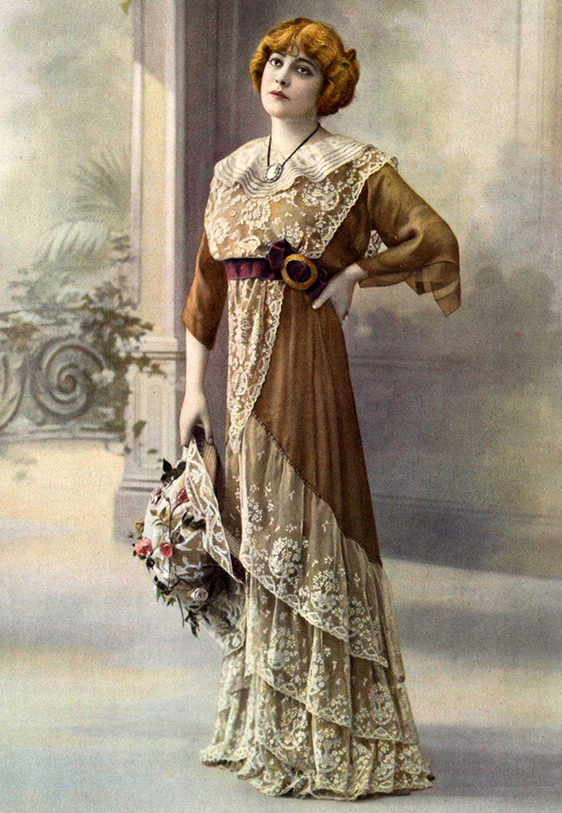 La mode est toujours influencée par des raisons à la fois sociales et politiques. Et au début du XXe siècle, plus précisément pour la période 1908-1914. l'art de la scène a également eu une grande influence sur la mode. A cette époque, opérettes, représentations théâtrales, revues, cabarets et autres formes de divertissement suggèrent de nouveaux types de vêtements.