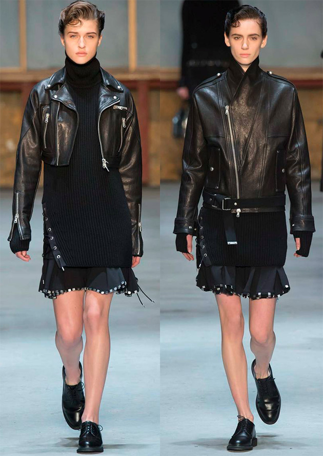 Les vestes de motard élégantes avec un caractère masculin distinct sont également appréciées des filles. La veste s'est avérée populaire et est devenue un article unisexe. Elle donne à un homme la masculinité et à une fille - l'indépendance et souligne en même temps sa fragilité. La veste en cuir joue un rôle majeur dans n'importe quel ensemble. Il convient aussi bien avec une mini-jupe qu'une robe, il a l'air intéressant avec une robe en tricot, sans parler d'un T-shirt et d'un jean.