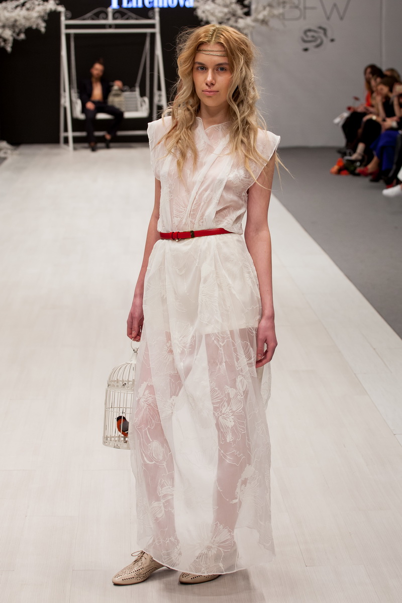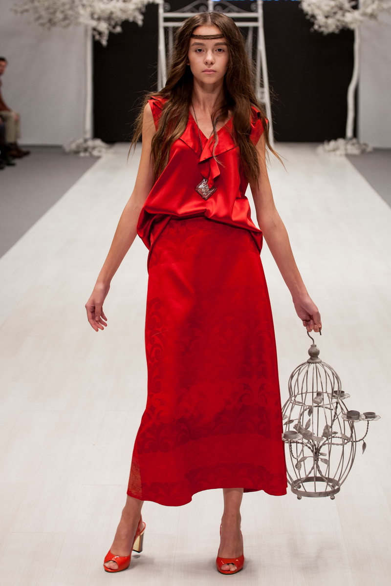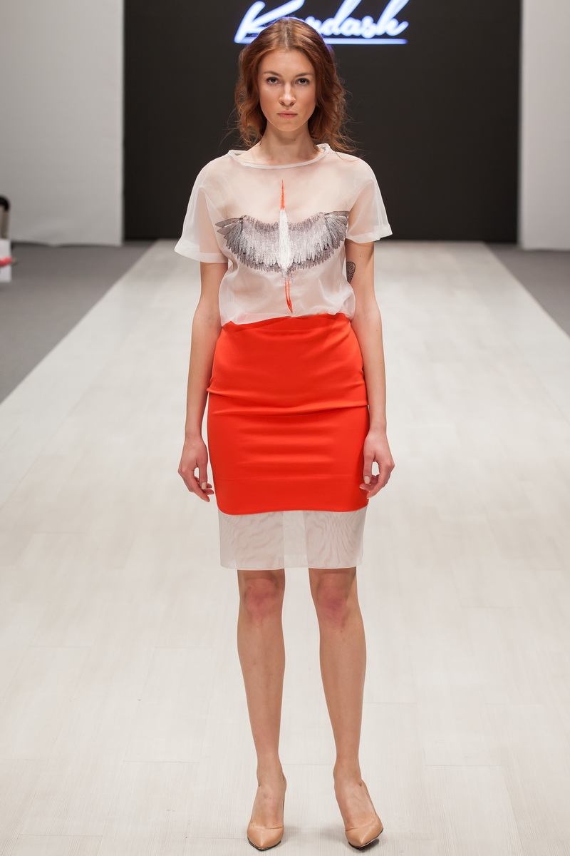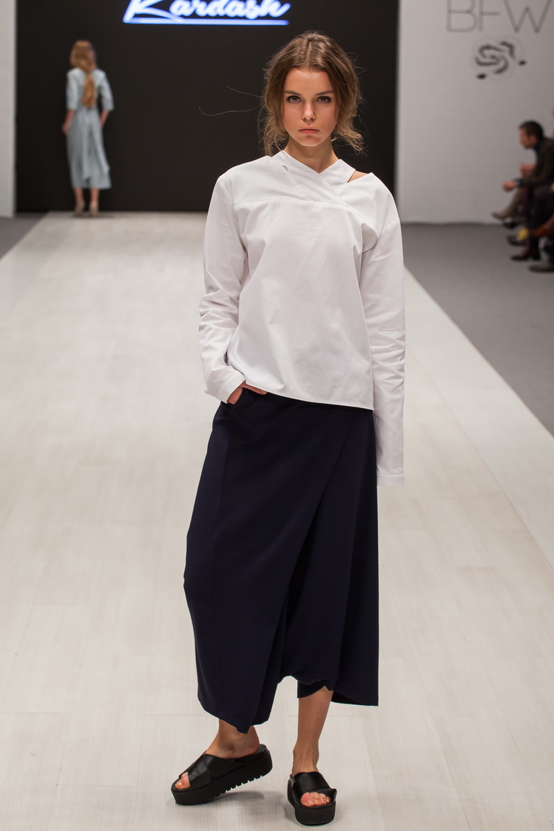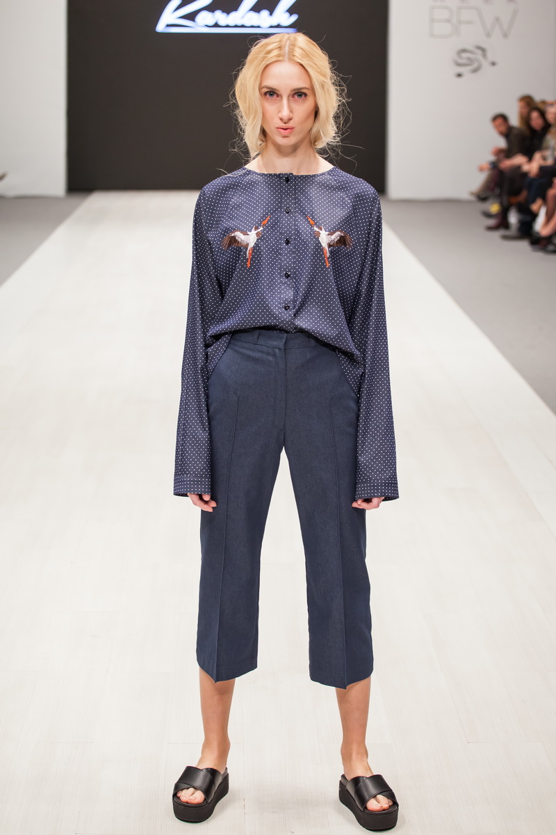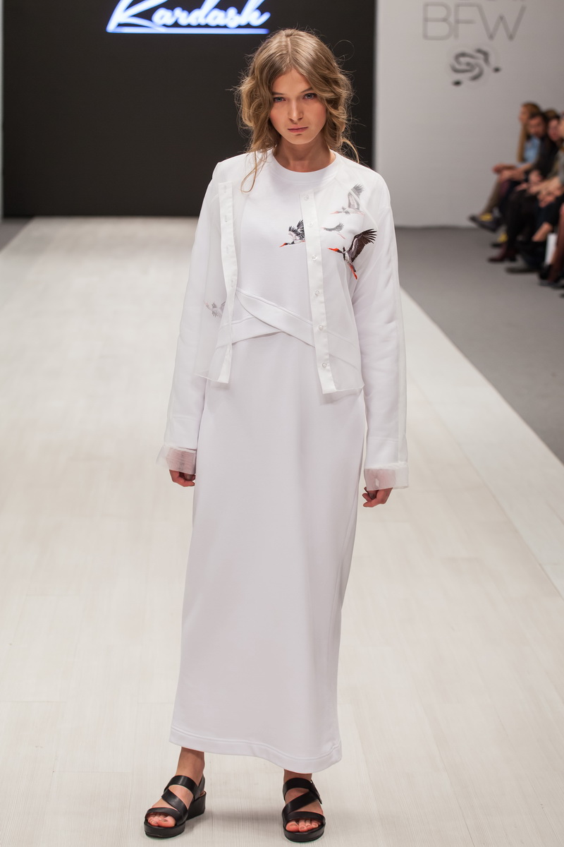 Le thème de la collection printemps-été de la créatrice Olga Kardash était le thème de la liberté, comme un mouvement en avant et l'absence de frontières. Tous les articles de la nouvelle collection du créateur étaient ornés d'images d'une cigogne. L'oiseau est majestueux, avec une grande envergure et définitivement épris de liberté. Et aussi l'oiseau cigogne (busel, c'est ainsi que le nom de cet oiseau est traduit en biélorusse) est, bien sûr, un symbole de la Biélorussie. La terre sous les ailes blanches, dit-on de la Biélorussie, c'est-à-dire les ailes d'une cigogne.