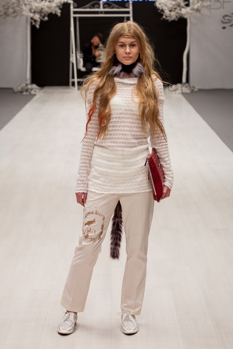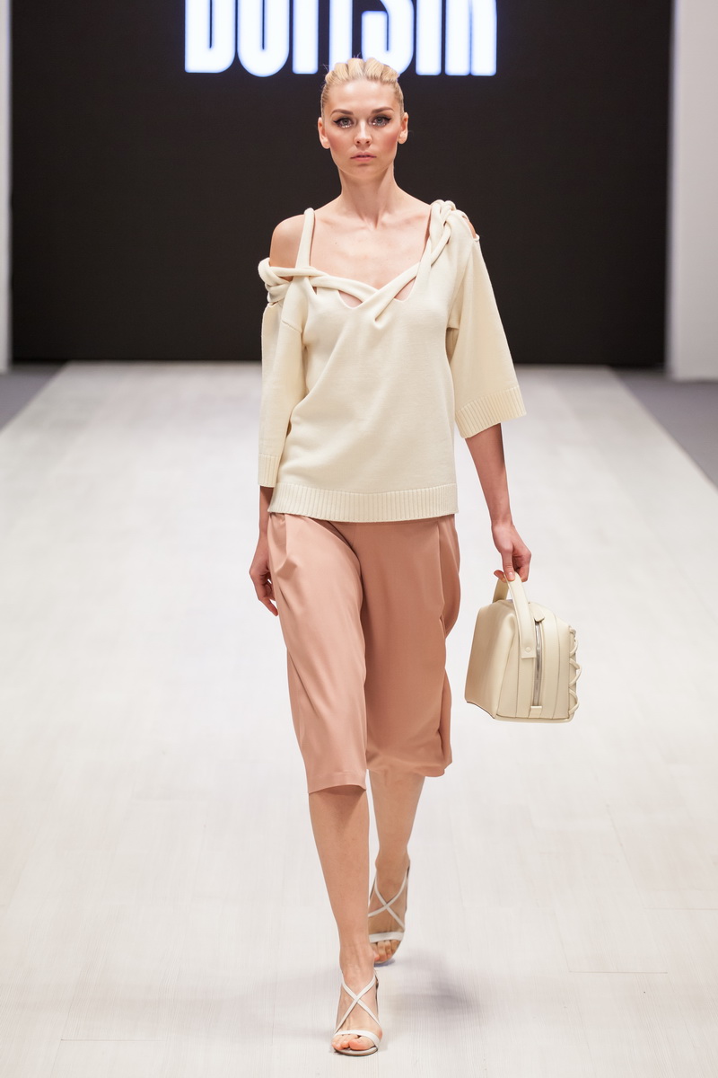 En plus des vêtements d'Irina, dans le cadre du show de la collection de la marque BOITSIK, on pouvait aussi voir des chaussures du studio Sutoria et des sacs de la marque Max Mironov.