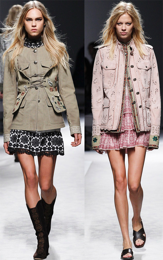 Par temps plus froid, une veste en cuir est indispensable, mais étant donné que les chaudes journées de printemps approchent, les créateurs proposent la plupart des modèles de vestes raccourcies ou légèrement allongées. Si la fraîcheur matinale se transforme en un après-midi chaud, ne vous fâchez pas, il suffit de relever vos manches, comme le montrent les mannequins sur le podium.