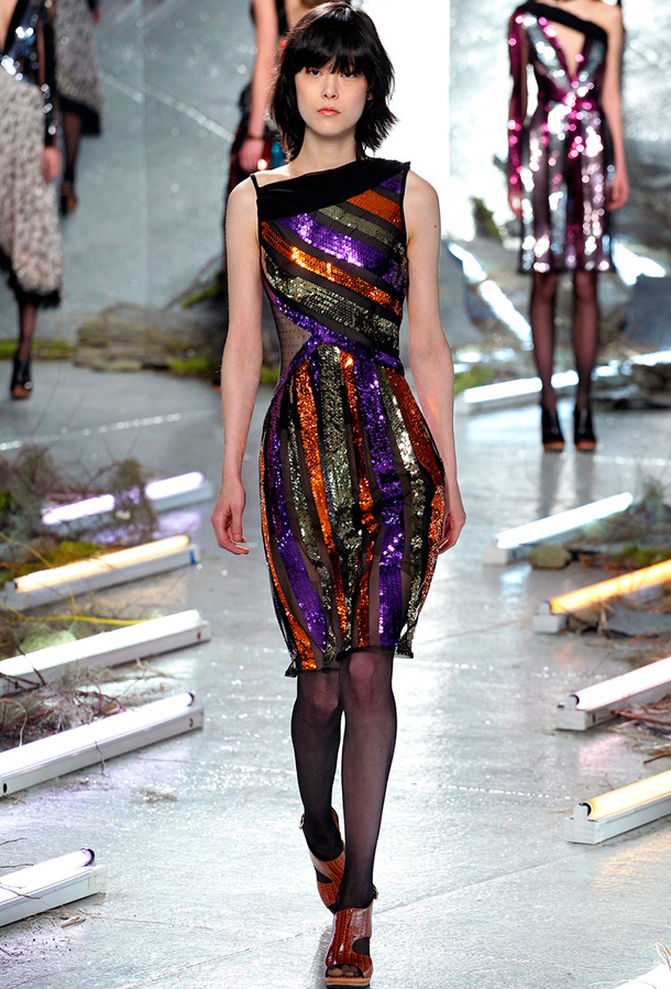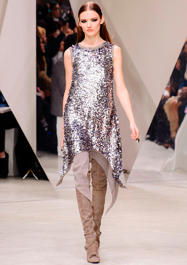 En pensant aux paillettes, il convient de noter que parfois cela ne signifie pas seulement une tenue brodée de cercles scintillants - des écailles. Maintenant, les limites se sont élargies et les paillettes sont appelées tissus avec des paillettes collées, et même des tenues décorées de tresses scintillantes.