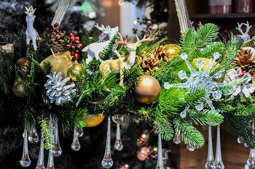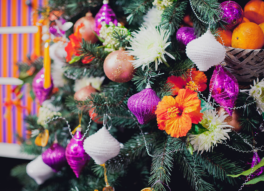 Aussi, le designer conseille d'utiliser des produits comme décor. Ainsi, parmi les décorations d'arbres de Noël, des bonbons peuvent être répertoriés et des mandarines dans un panier en osier deviendront une décoration juteuse d'une table basse dans le salon. Et les fleurs sur les arbres de Noël et dans les compositions du Nouvel An sont déjà au sommet de leur popularité pour la deuxième année. De plus, les fleurs artificielles ne diffèrent souvent pas extérieurement des fleurs naturelles et vous serviront longtemps pour décorer vos vacances.