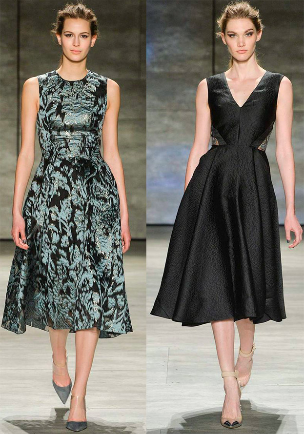 Dans le même temps, il n'est pas nécessaire de porter une tenue de bureau de tous les jours, des éléments de fête, sous forme de matière avec une texture intéressante ou un petit décor festif sont nécessaires. Les robes Tory Burch en sont un excellent exemple - elles sont peu coûteuses, très sobres, voire strictes dans un certain sens, et en même temps festives.