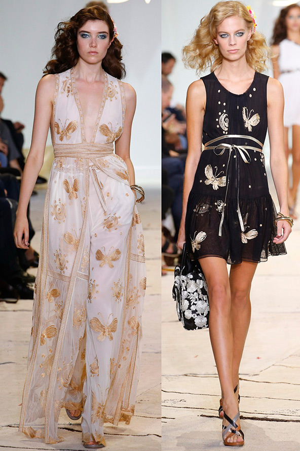 Papillons sur les robes et accessoires - c'est romantique et féminin. Les imprimés papillons peuvent être géométriques ou exotiques, ou dans des motifs abstraits ou des couleurs vives. Dans tous les cas, une robe avec un imprimé papillon deviendra la base d'un look féminin et sera très utile cet été. Les designers reviennent toujours aux imprimés avec ces belles créatures de la nature.