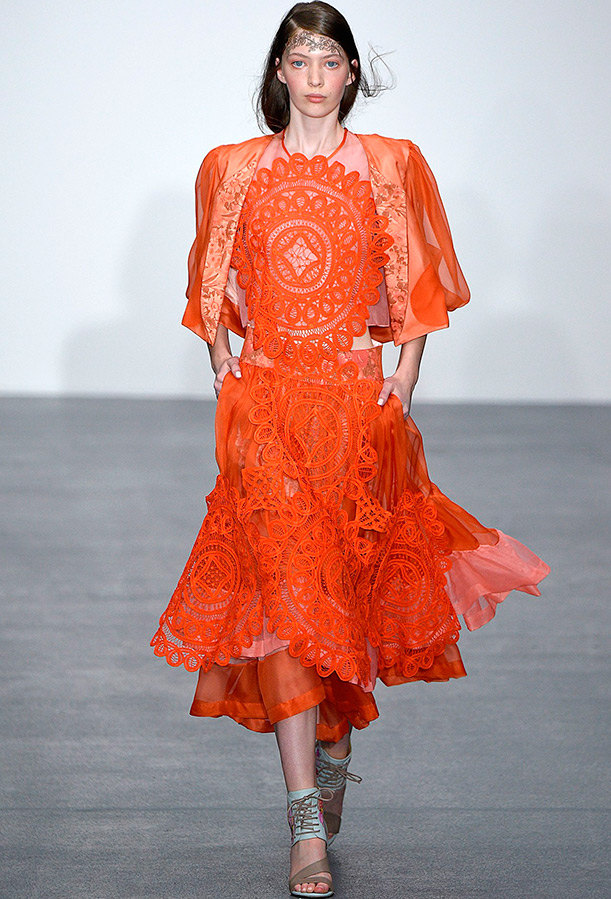 La couleur mandarine est efficace lorsque vous voulez attirer votre regard et impressionner les autres, surtout en contraste avec le bleu ou le blanc. Mais un mandarin joyeux peut aussi prendre un sens auxiliaire dans l'image, lorsqu'il contient 20-30% de l'ensemble, ou créer un accent lumineux lorsqu'il est utilisé pour mettre en évidence quelque chose. Dans ce dernier cas, la couleur de la mandarine prend environ 10%, mais c'est la plus efficace, car elle crée un contraste lumineux. Cela peut être une écharpe, un sac, des gants ou des chaussures.