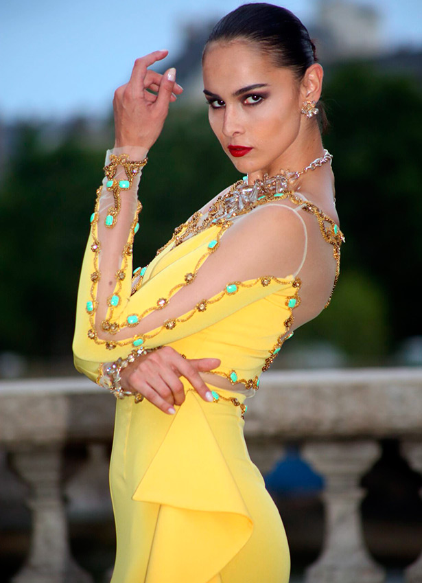 Pour une soirée au restaurant, une robe jaune avec des chaussures argentées et un boléro serait une bonne option. L'image se révélera sophistiquée et raffinée.
