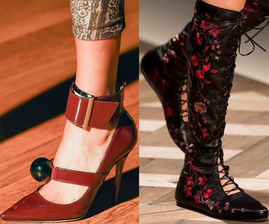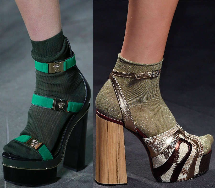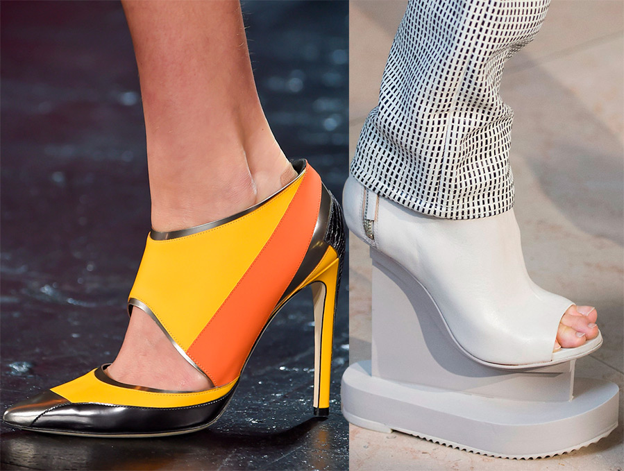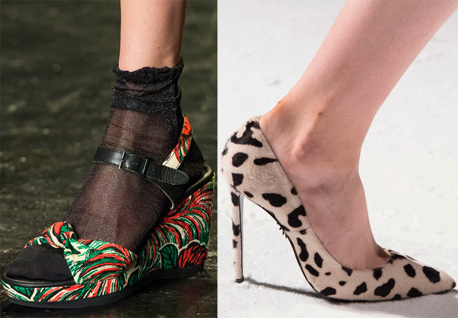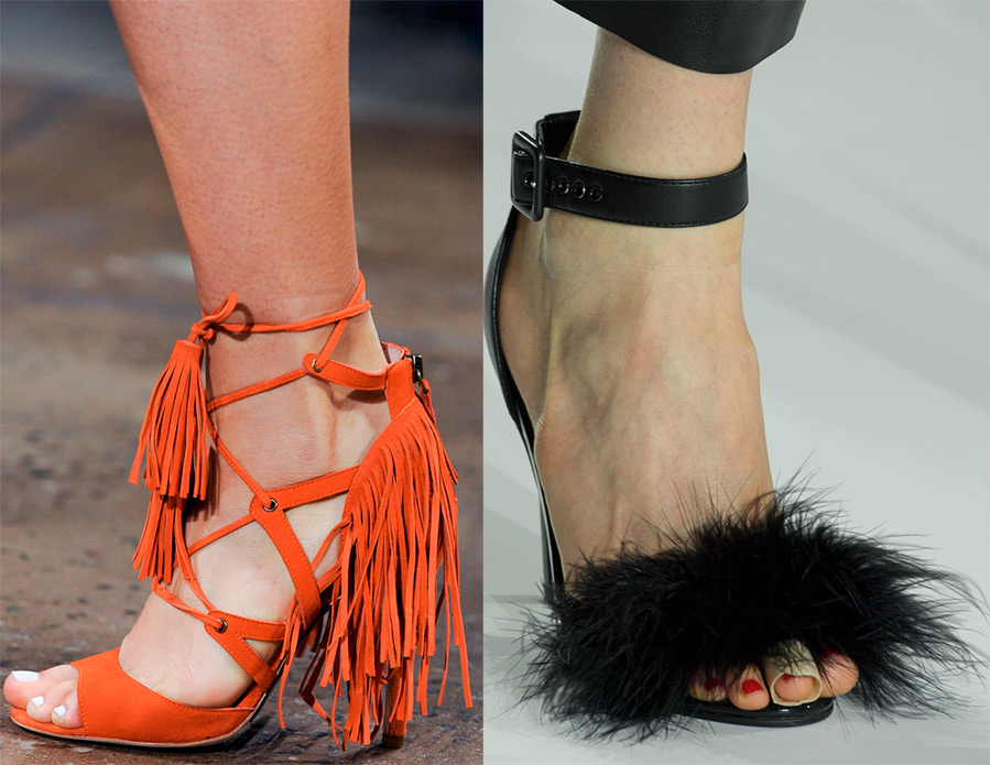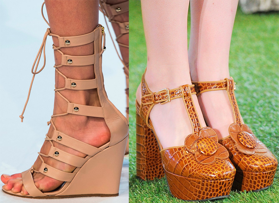 Les chaussures d'été sont toujours richement décorées - tissage, fleurs, broderies, lanières de cuir. Les tissages fins ne sont pas la première saison, et les tissages avec de larges bretelles, rubans et autres types de textiles divers gagnent en popularité. Les rubans et le laçage sont particulièrement dans la tendance. Les œillets et les chaînes sont utilisés comme décor.