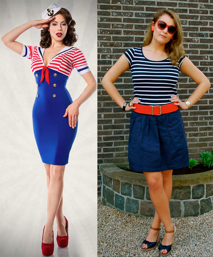 Récemment très pertinent imprimé rayé, et donc le style marin est à nouveau à l'horizon de la nouvelle saison. Le mystère de la popularité du style marin d'année en année est que la combinaison de couleurs blanc, bleu et rouge convient à presque toutes les femmes, quelle que soit la couleur de la peau et des cheveux, de tout âge, car "l'âme de la mer ... est toujours jeune!"