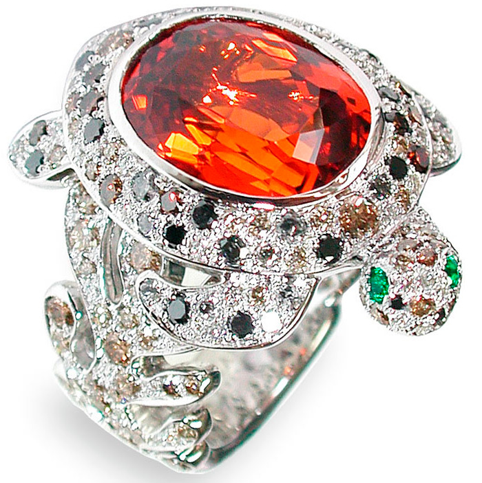 Parmi les figures les plus populaires du monde sous-marin se trouve le poisson rouge - symbole de réussite et de réalisation des désirs, même les plus incroyables et les plus inattendus. Elle est devenue comme un talisman fiable pour ceux qui souhaitent prendre la place d'un leader dans la société. Anneauxsur laquelle une tortue de mer parsemée de perchoirs en diamants, d'ancres flottantes, de voiliers, d'étoiles de mer et bien plus encore.