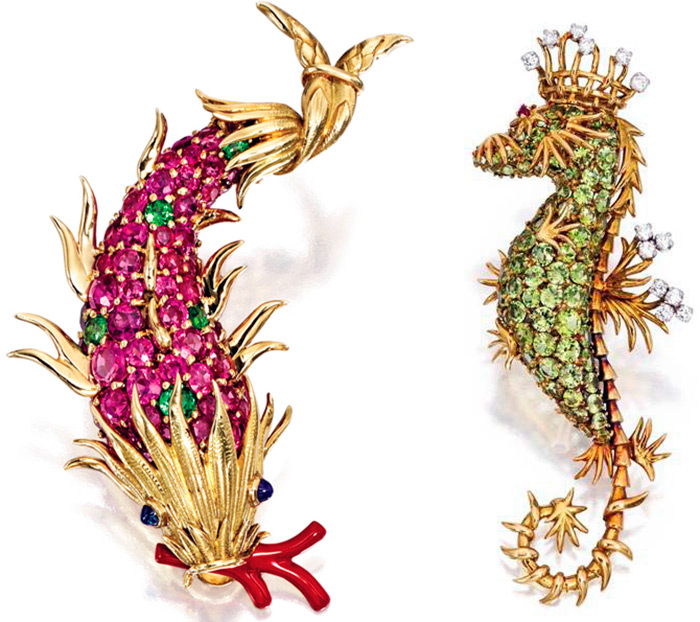 Les créations inhabituelles de l'élément marin ont réussi à conquérir non seulement les voyageurs courageux, mais aussi les bijoutiers connus de l'art mondial. L'un d'eux était Jean Schlumberger. Sa carrière professionnelle a commencé après avoir commencé à travailler pour Elsa Schiaparelli, qui a engagé Jean pour créer ses bijoux fantaisie surréalistes.