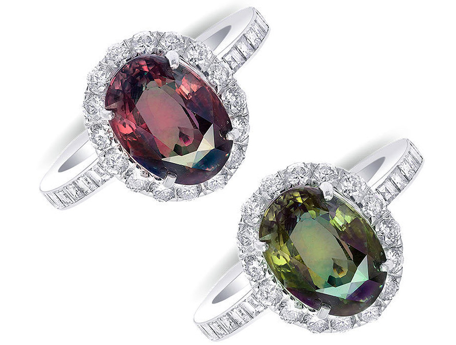 Comme les naturels, ils changent de couleur et seul un spécialiste peut les distinguer des naturels. Habituellement, les pierres naturelles contiennent souvent des inclusions de gaz, même si elles sont si petites que vous pouvez les voir au microscope. Les alexandrites artificiels sont produits en Amérique, en Russie et au Japon.