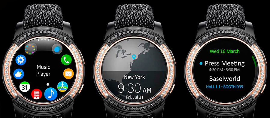 Par conséquent, l'utilisation d'une montre simple n'est pas géniale, une montre intelligente est une autre affaire, ils peuvent faire beaucoup plus, et donc beaucoup attendent depuis longtemps une version précieuse d'une montre intelligente. Désormais, nos attentes se sont concrétisées dans la collaboration entre Samsung et de Grisogono. La montre Samsung Gear S2 sertie d'or et de diamants est un parfait exemple de la fusion du luxe et de la haute technologie.