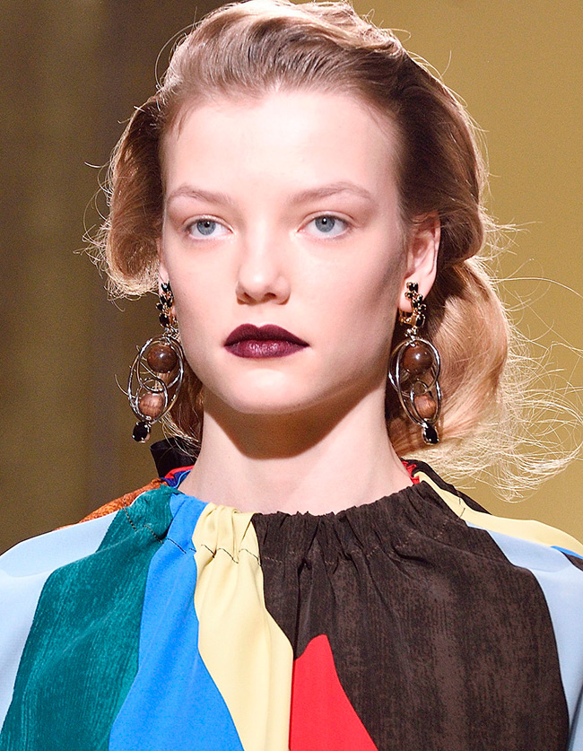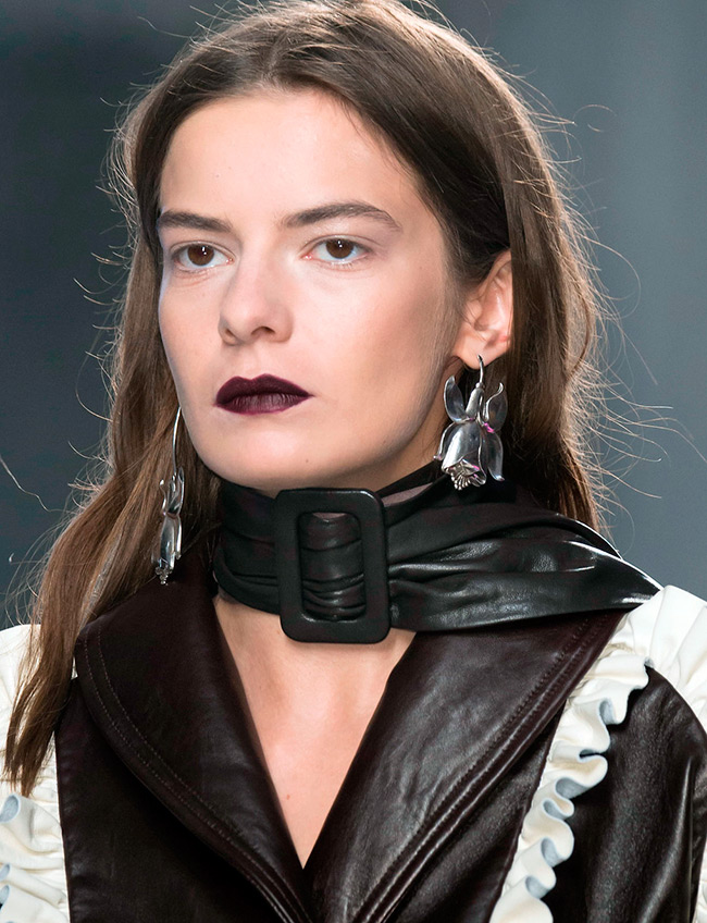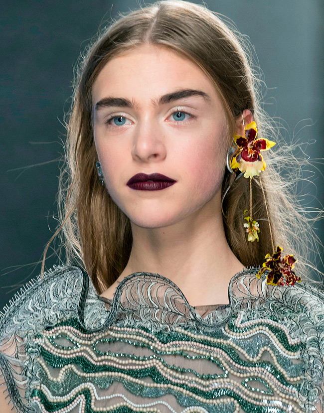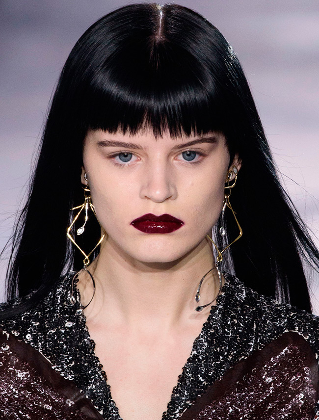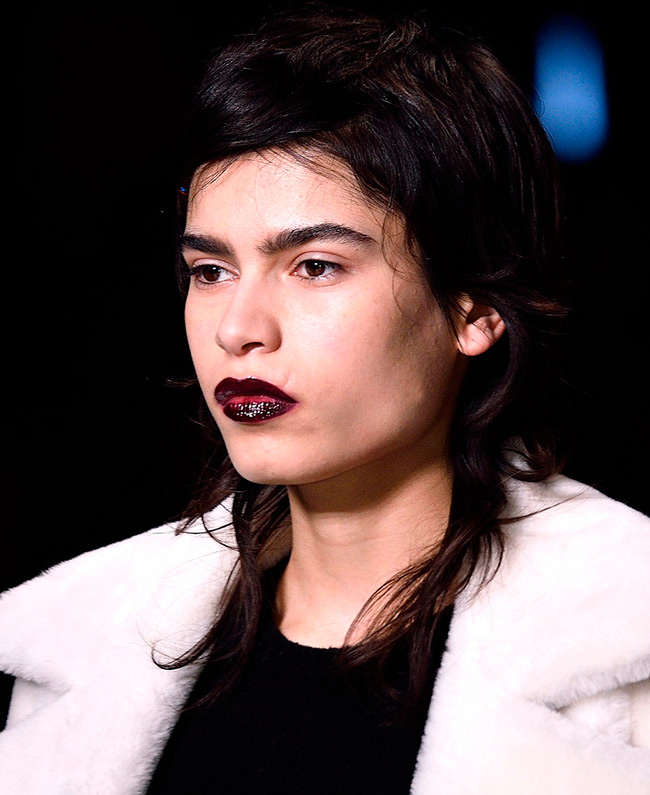 Si vous décidez également de peindre vos lèvres d'une couleur extrêmement foncée, choisissez des rouges à lèvres de couleur vin foncé qui deviennent noirs. Le contour des lèvres doit être clair et expressif, et le maquillage des yeux peut être très minimaliste. Vous pouvez même laisser vos cils non peints, afin que rien ne détourne l'attention de l'accent principal - le rouge à lèvres foncé sur les lèvres, comme principale tendance beauté de la saison.