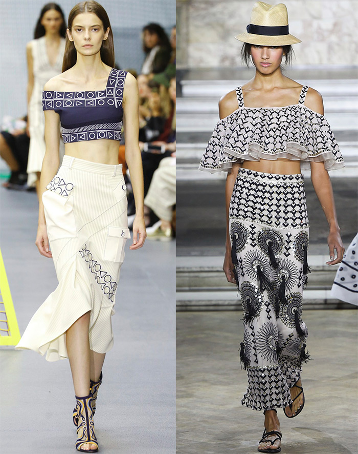 Parmi les nombreux modèles de tops, les créateurs ont choisi : des débardeurs - comme un tee-shirt régulier ou à fines bretelles, dos nu - un top dos nu avec des bretelles de différentes largeurs nouées autour du cou, un top tube - un haut sans bretelles serré, pas plus haut que les aisselles, un corset - un haut qui couvre étroitement la partie inférieure de la poitrine et de l'abdomen, des hauts à volants et épaules nues, des hauts courts et bien d'autres.