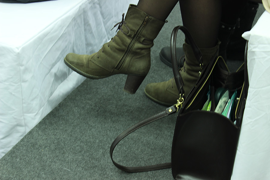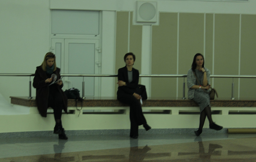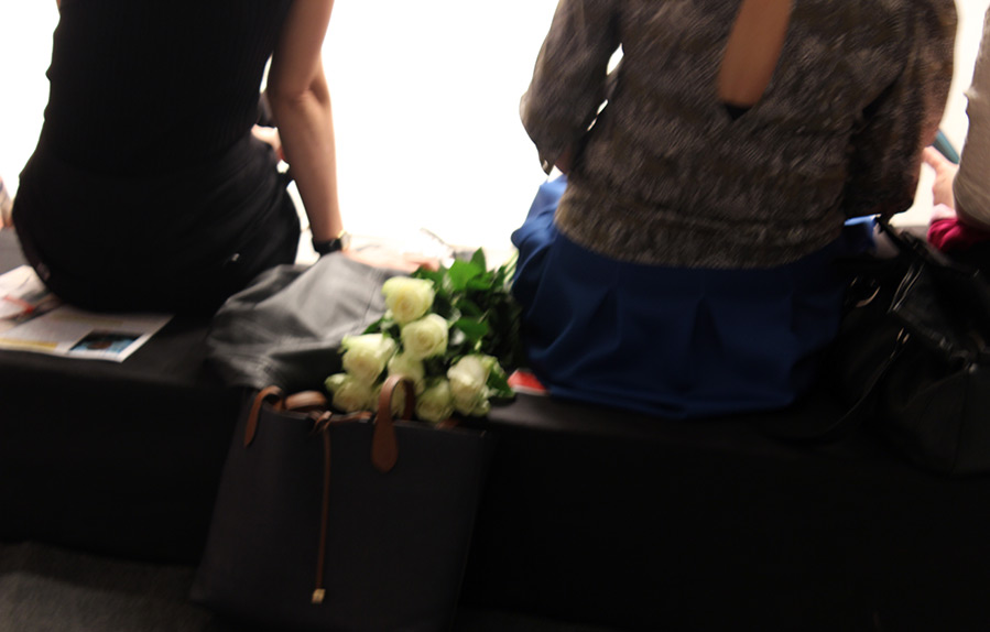 Dans la salle elle-même, les filles en charge de l'assise des invités, qui attendent également.