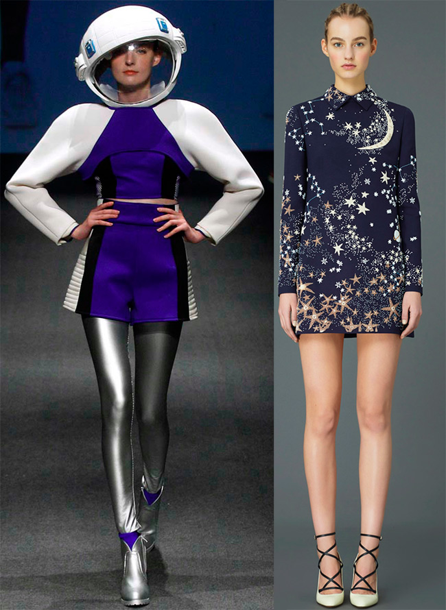 L'univers, les étoiles, le soleil, les planètes du système solaire, la lune et bien sûr les vols des astronautes à différentes époques ont influencé le travail de nombreux designers. Le 12 avril 1961, Youri Gagarine a effectué le premier vol dans le vaisseau spatial Vostok-1 et pour la première fois au monde a effectué un vol en orbite autour de notre planète. Le vol de Gagarine autour de la Terre n'a duré que 108 minutes, mais cet événement a eu un impact énorme sur la mode et toute l'histoire de l'humanité.
