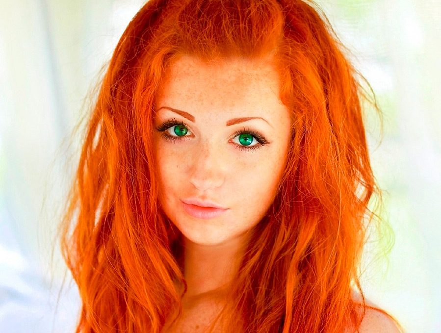 Après de telles expériences, vous pouvez commencer à colorier sérieusement. La couleur des cheveux soulignera non seulement l'éclat des yeux verts, mais aussi la peau du visage. La couleur rouge a aussi des tons, elle peut être plus claire ou plus foncée. Choisissez une couleur plus claire pour une peau plus pâle. En fait, pour n'importe quelle couleur, tout d'abord, il vaudrait mieux avoir une peau parfaite.