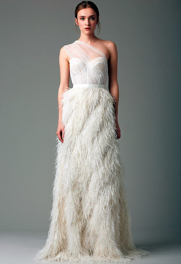 Malgré le conservatisme de la mode nuptiale, de nombreuses mariées considèrent robes courtes, qui sont particulièrement pertinents pendant la saison chaude. Il existe de nombreuses robes de mariée courtes dans les collections 2026, mais toutes ne sont pas légères et vraiment estivales. Par exemple, les robes ornées de plumes sont belles, mais très chaudes.