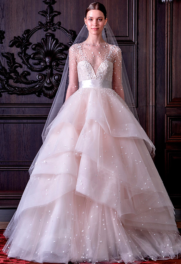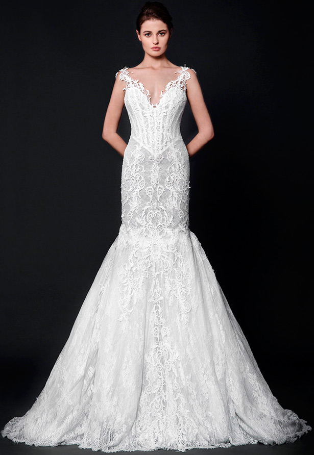 Si vous voulez montrer le vrai luxe et faire forte impression sur les invités et les utilisateurs des réseaux sociaux, vous pouvez acheter une soi-disant «robe nue» en dentelle. De nombreuses célébrités choisissent ces tenues pour les tapis rouges, mais au mariage, vous devez avoir l'air plus chaste, alors choisissez des robes avec un tissu de base nude, qui créeront l'effet visuel d'une silhouette nue vêtue de dentelle.