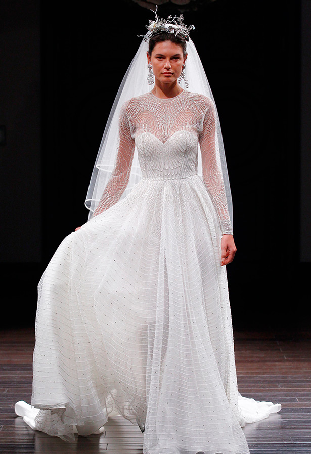 Si vous voulez vous sentir comme une vraie princesse, ravir vos invités et obtenir de magnifiques photos pour votre album de mariage et vos réseaux sociaux, achetez une tenue avec un train. Les robes de mariée sont nombreuses dans les collections 2026, avec la traîne décorée de broderies ou de dentelles, de motifs floraux et de perles scintillantes.