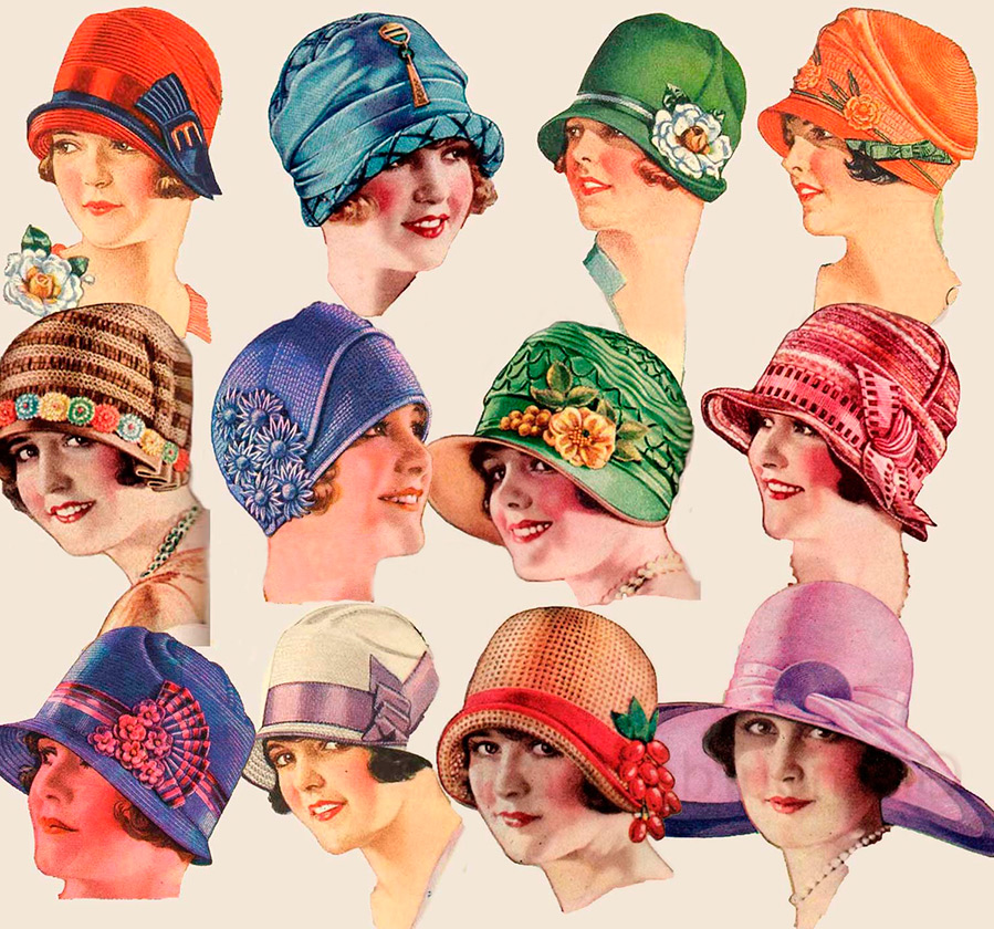 Des cheveux courts, une frange, de petites mèches qui couvraient légèrement les oreilles ou de longs paysikami bouclés créaient une petite tête qui nécessitait un petit chapeau. Le chapeau est devenu serré, bien ajusté à la tête. Au début, le chapeau ressemblait à un seau ou à un pot ; les plumes, les fleurs, les rubans servaient souvent de décoration.