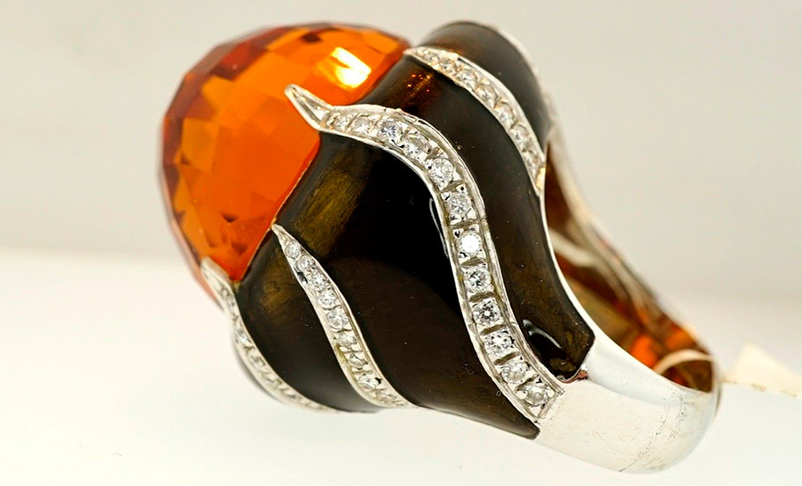 Depuis les temps anciens, les icônes, les vitraux et les vêtements sont décorés d'inserts en citrine. Les bijoux en citrine sont toujours un favori. Dans la technique de la joaillerie, le cristal n'est pas difficile à traiter, de plus, il est en parfaite harmonie avec d'autres pierres précieuses, les bijoux avec des diamants encadrés d'or sont particulièrement impressionnants.