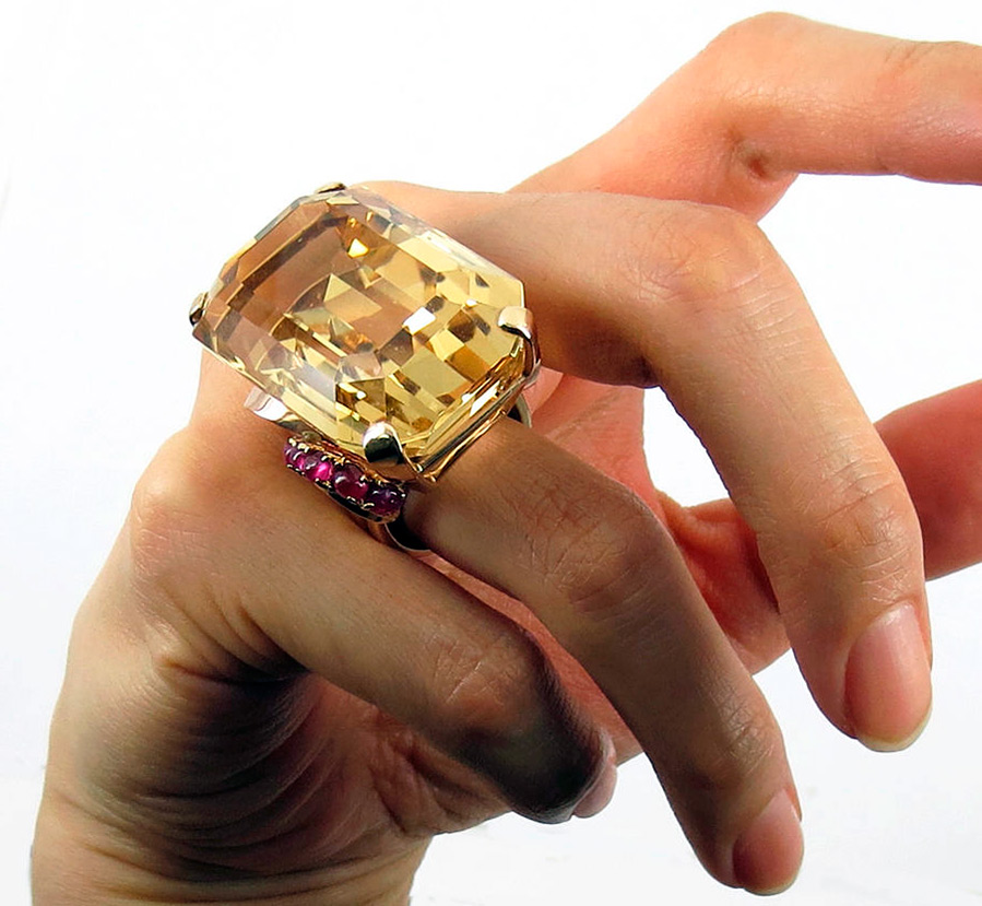 Citrine "Malaga" - la plus grande pierre porte le nom de la ville dans laquelle elle a été exposée lors de l'exposition. La pierre atteint 20 200 carats, avec des dimensions de 25x25x15. Un autre cristal pesant 2258 carats se trouve à l'Université Smithsonian.