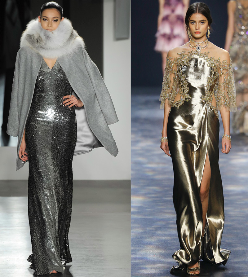 Si vous n'êtes pas sûr de la perfection de votre silhouette, les designers ont pensé à vous. Ils proposent des modèles qui allient brillance et brillance avec des matières mates ou des décorations partielles en tissus brillants. Les robes noires brillantes des collections Vionnet et Elisabetta Franchi sont luxueuses.