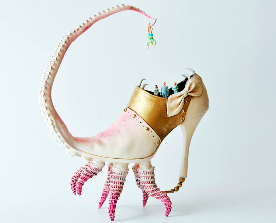Il est difficile de dire quand les artistes ont commencé à expérimenter avec des chaussures, à créer des objets d'art et des installations fabuleuses à partir d'elles. Personnellement, je me souviens de la collaboration entre la designer Elsa Schiaparelli et l'artiste Salvador Dali. Ce sont eux qui ont créé le chapeau en forme de chaussure et d'autres choses inhabituelles. Malgré le design inhabituel, les vêtements et les accessoires Elsa Schiaparelli pourrait être utilisé aux fins prévues.