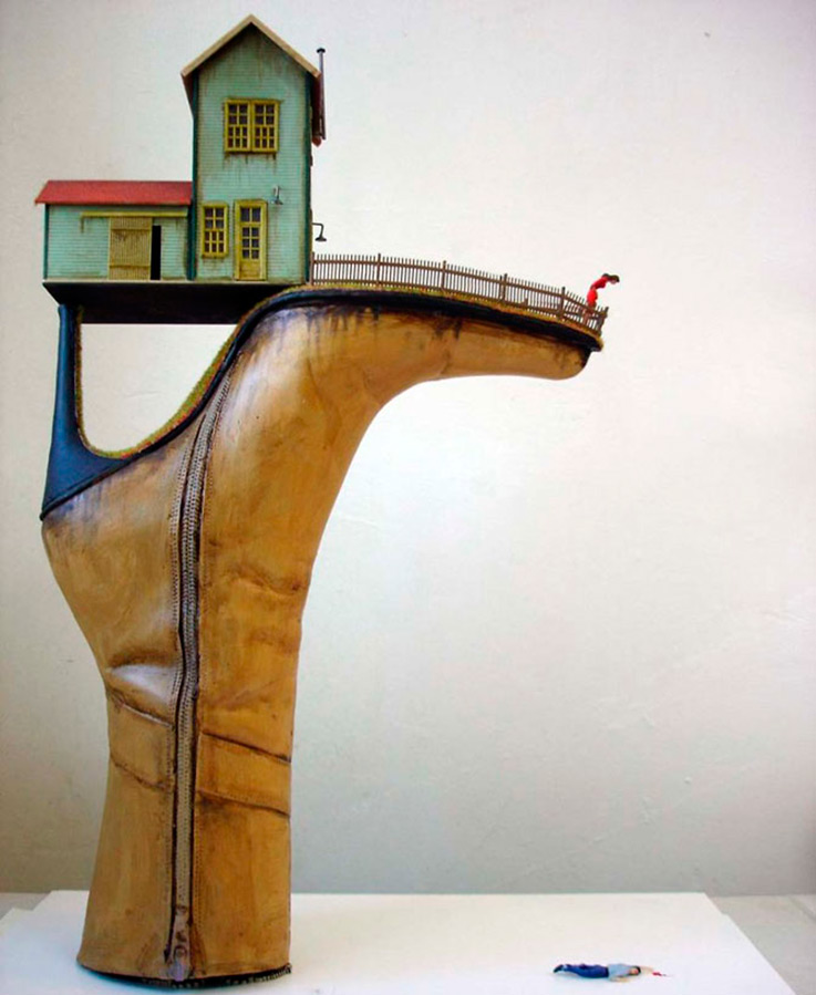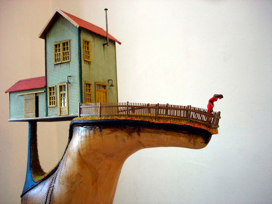 Je ne sais pas quel est le succès des ventes, mais les œuvres du maître font en tout cas une forte impression, et pourraient bien plaire à ceux qui en ont assez des figurines en porcelaine traditionnelles, des vases et des fleurs en perles. Si je voulais décorer l'intérieur dans le style d'"Alice au pays des merveilles", ces bottes insolites me seraient très utiles...