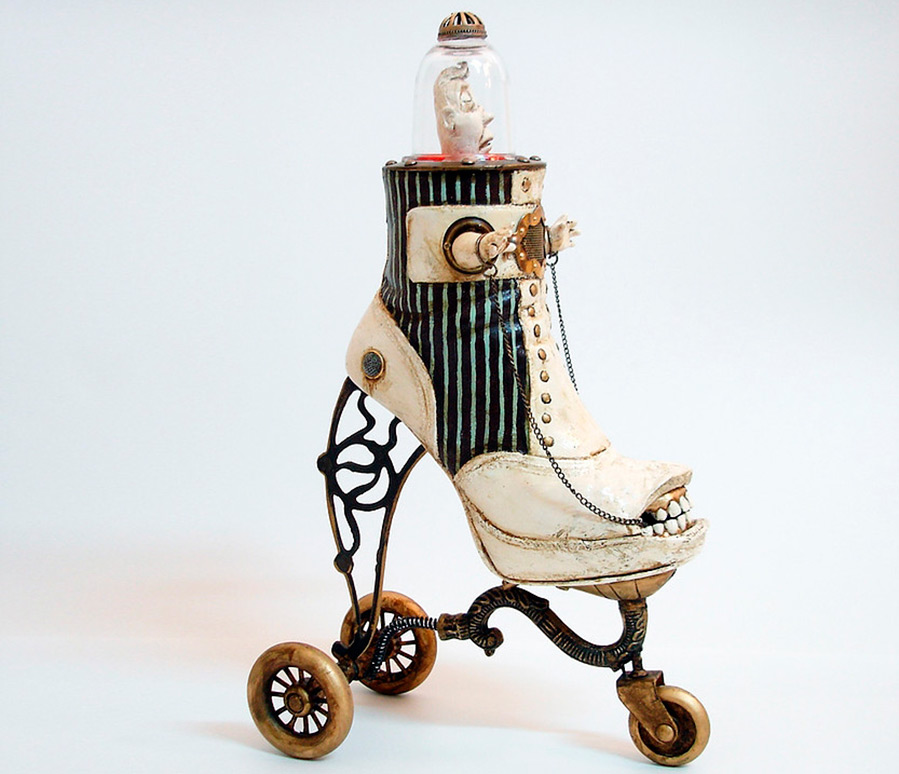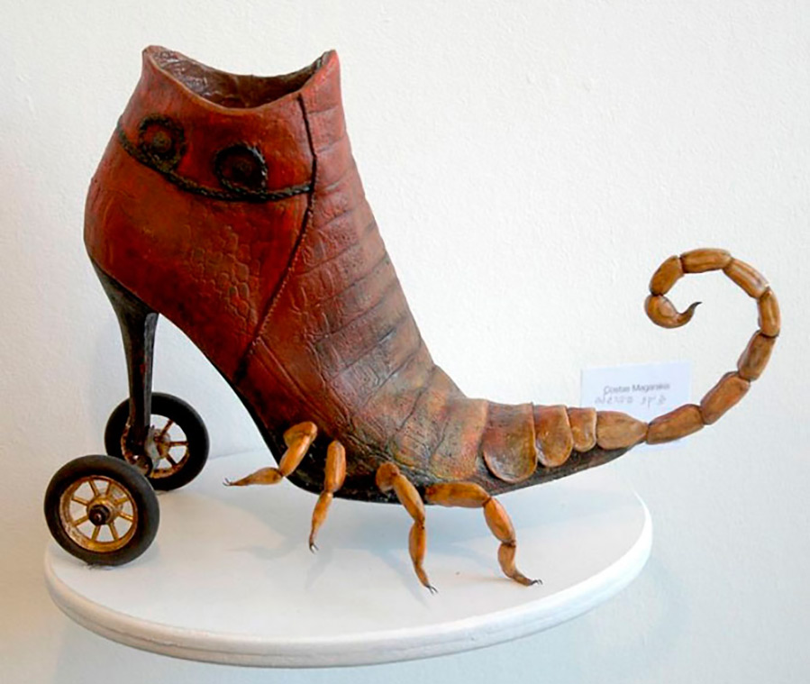 Costa Magarakis dans son travail est allé beaucoup plus loin dans le monde des fées. « Forgeron-cordonnier », comme il s'appelle lui-même, crée des objets d'art et des installations incroyables pour la perception des gens ordinaires. Les chaussures Costa Magarakis ne conviennent pas du tout à l'usage initial, mais elles peuvent décorer un intérieur inhabituel.