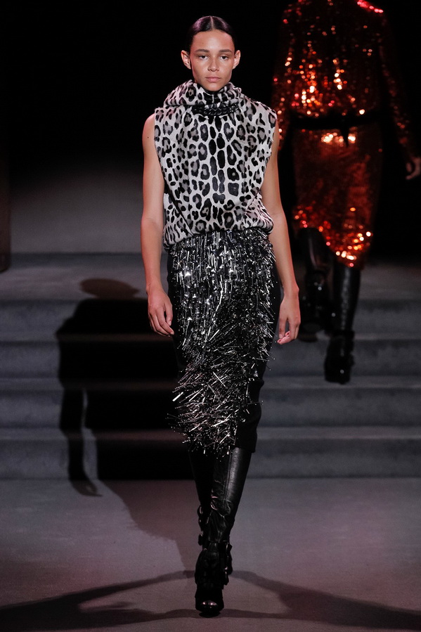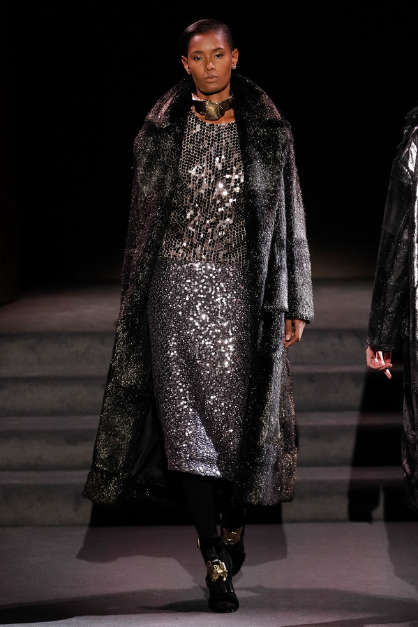 Collection Tom Ford automne-hiver 2025-2026 s'est avéré brillant et luxueux, nous pouvons voir ici une variété de fourrures, de tissus coûteux, de paillettes et de paillettes, d'imprimés d'animaux, beaucoup de cuir, de style militaire, de ceintures originales. La collection de cosmétiques comprend des rouges à lèvres de tons beige et rose, des ombres d'espresso et de champagne, du blush, du gel pour les sourcils, de la poudre bronzante et du baume à lèvres.