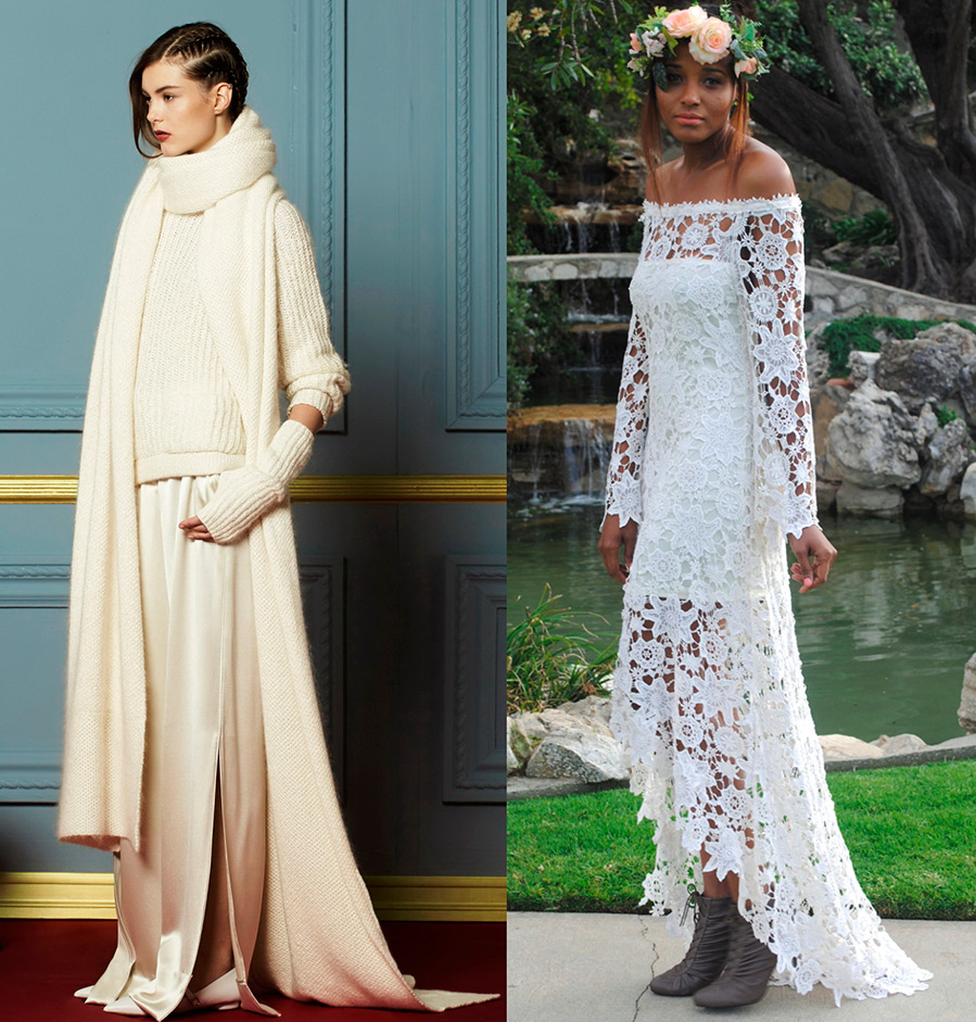 Les robes de mariée tricotées peuvent être divisées en deux groupes principaux :