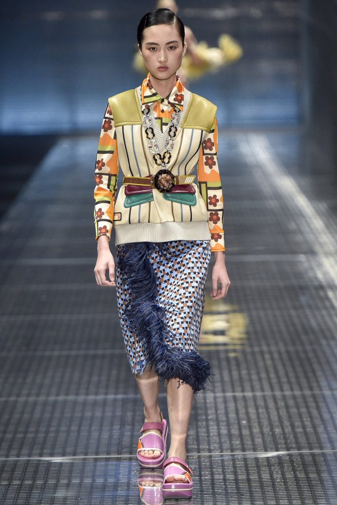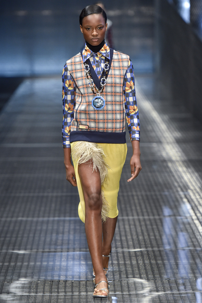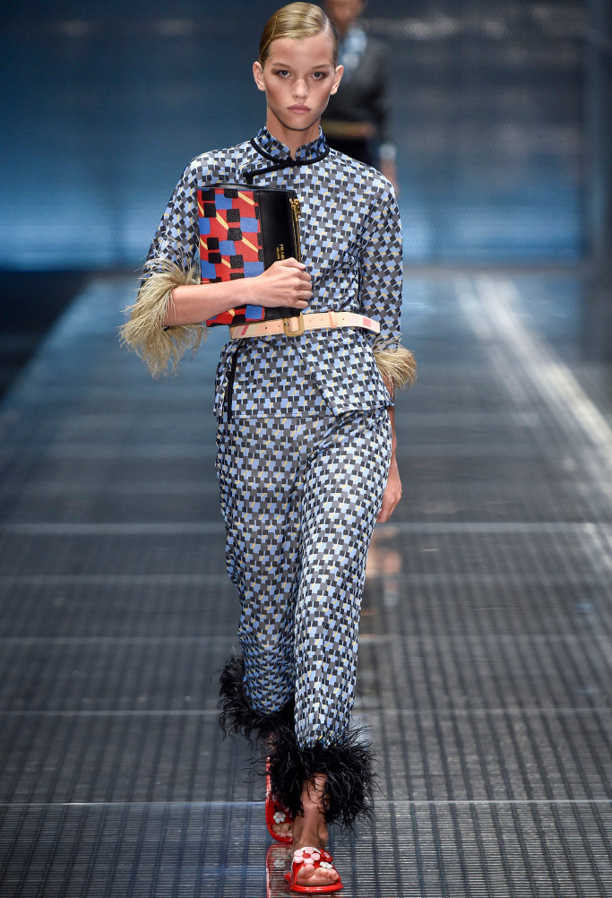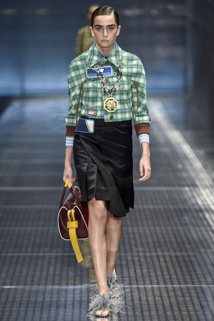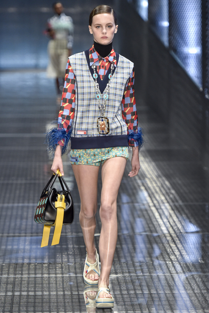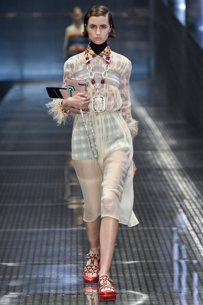 Comme décorations sur les modèles, vous pouvez voir bijoux massifs - des chaînes avec des pendentifs, qui dans certains looks sont en bonne harmonie avec les imprimés sur les vêtements. Et s'il fera froid au printemps et à l'été 2026, Prada suggère de porter un gilet et une veste en cage ou une veste en cuir brillant, qu'il vaut mieux ne pas attacher, mais serrer avec une ceinture.