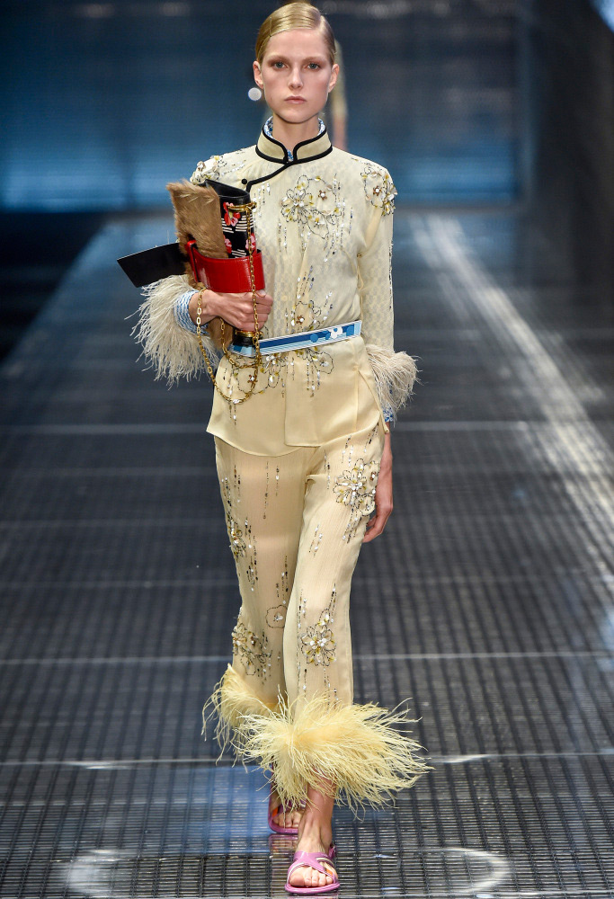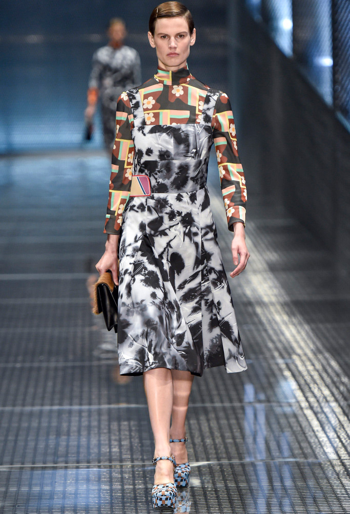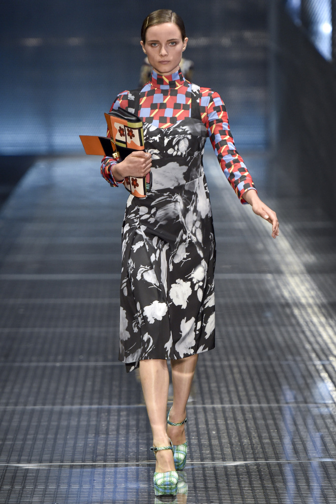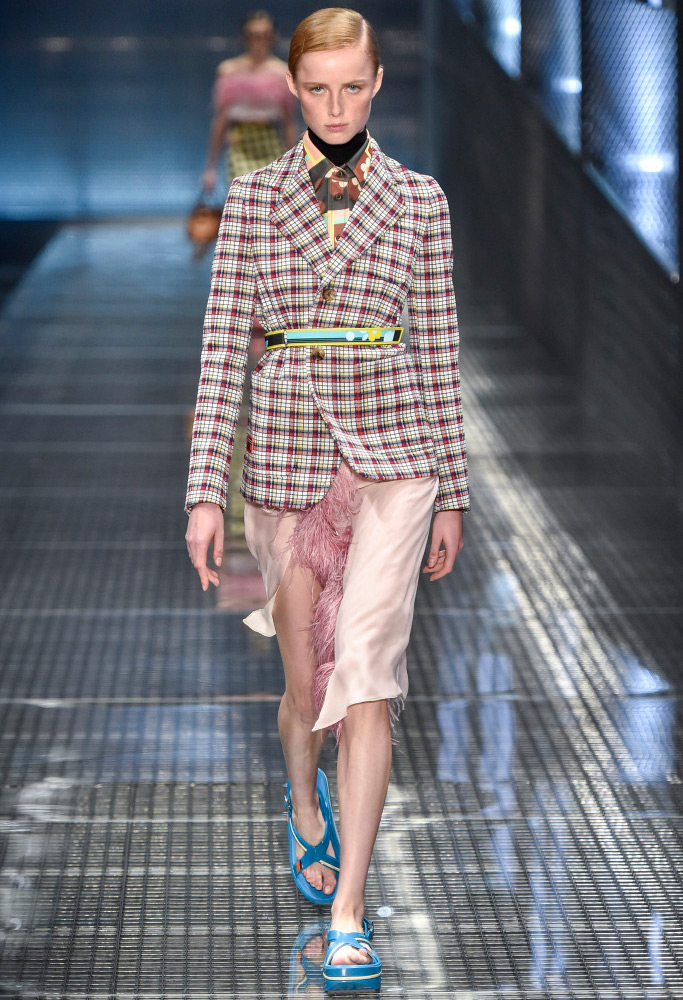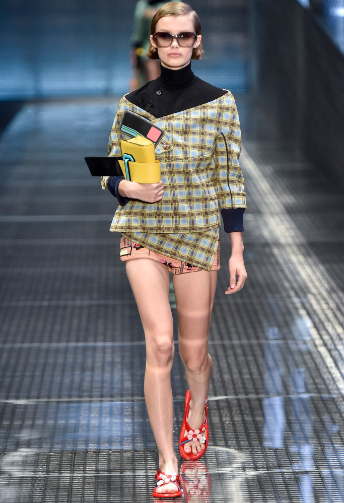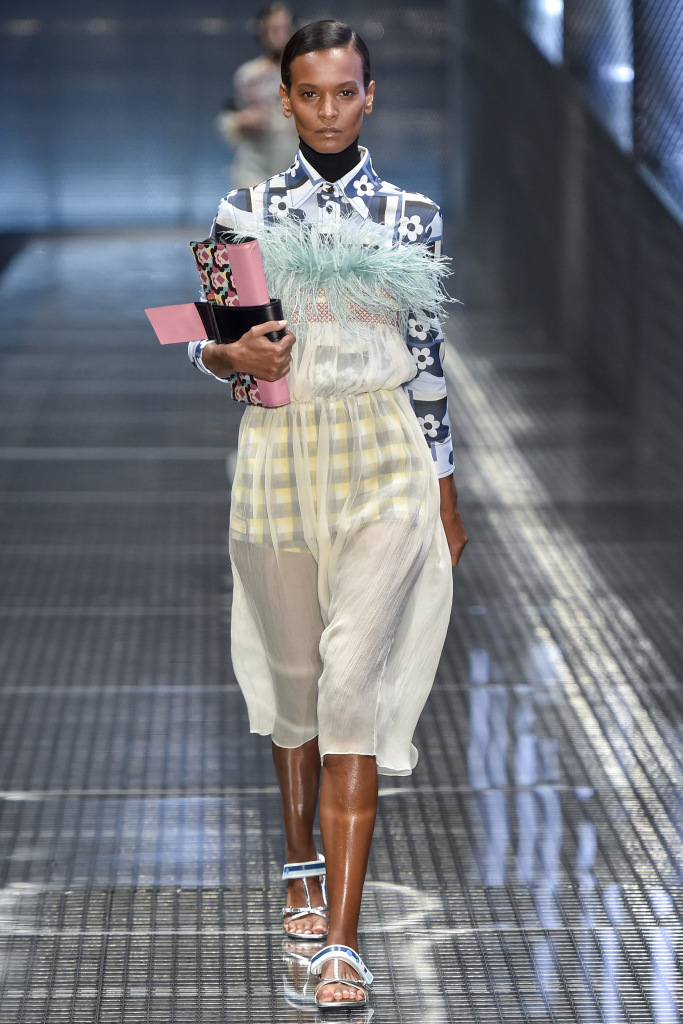 Comme décorations sur les modèles, vous pouvez voir bijoux massifs - des chaînes avec des pendentifs, qui dans certains looks sont en bonne harmonie avec les imprimés sur les vêtements. Et s'il fera froid au printemps et à l'été 2026, Prada suggère de porter un gilet et une veste en cage ou une veste en cuir brillant, qu'il vaut mieux ne pas attacher, mais serrer avec une ceinture.