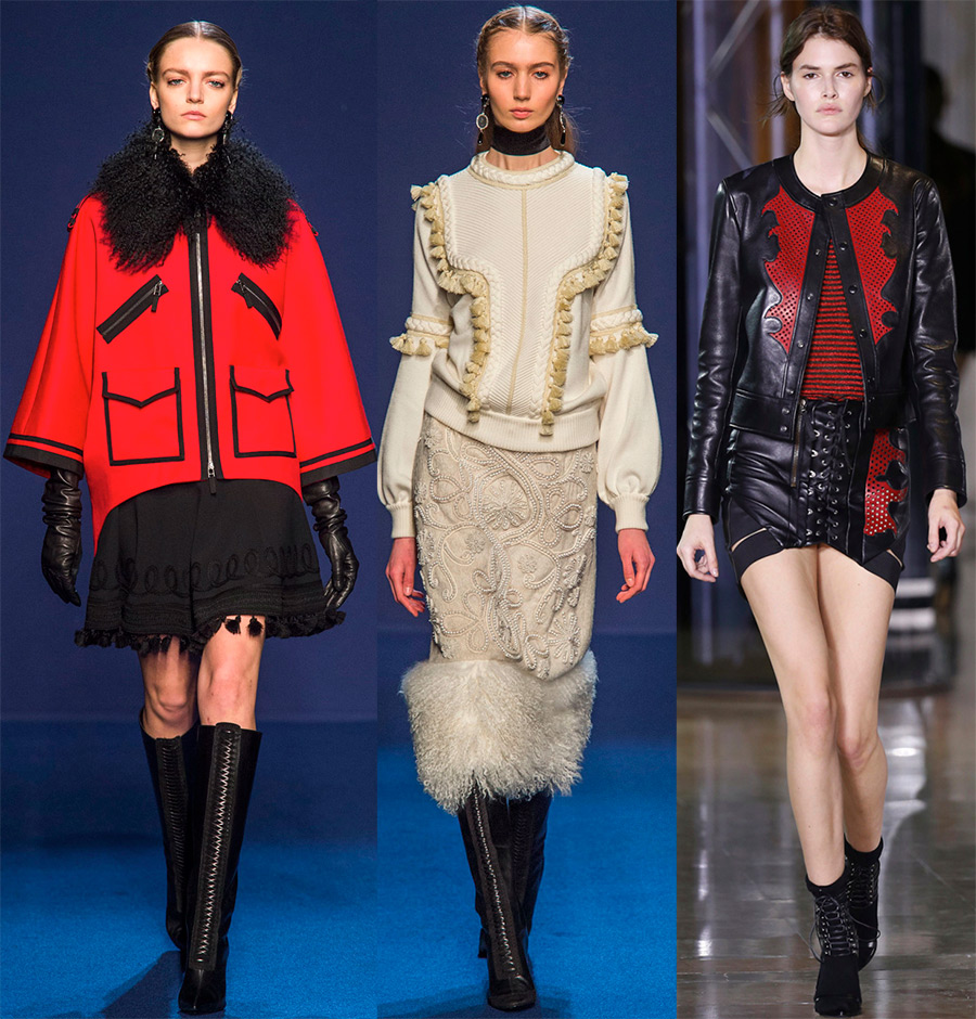 La décoration avec de la fourrure n'a pas eu lieu pendant la première saison; presque tous les vêtements, y compris les chaussures, sont décorés de fourrure. La décoration en fourrure et les jupes n'ont pas été épargnées. Dans la nouvelle saison, parmi les principaux éléments décoratifs figurent les décorations en cordon et en pompons. Les concepteurs ont donné une préférence significative pour la décoration des jupes aux boutons.