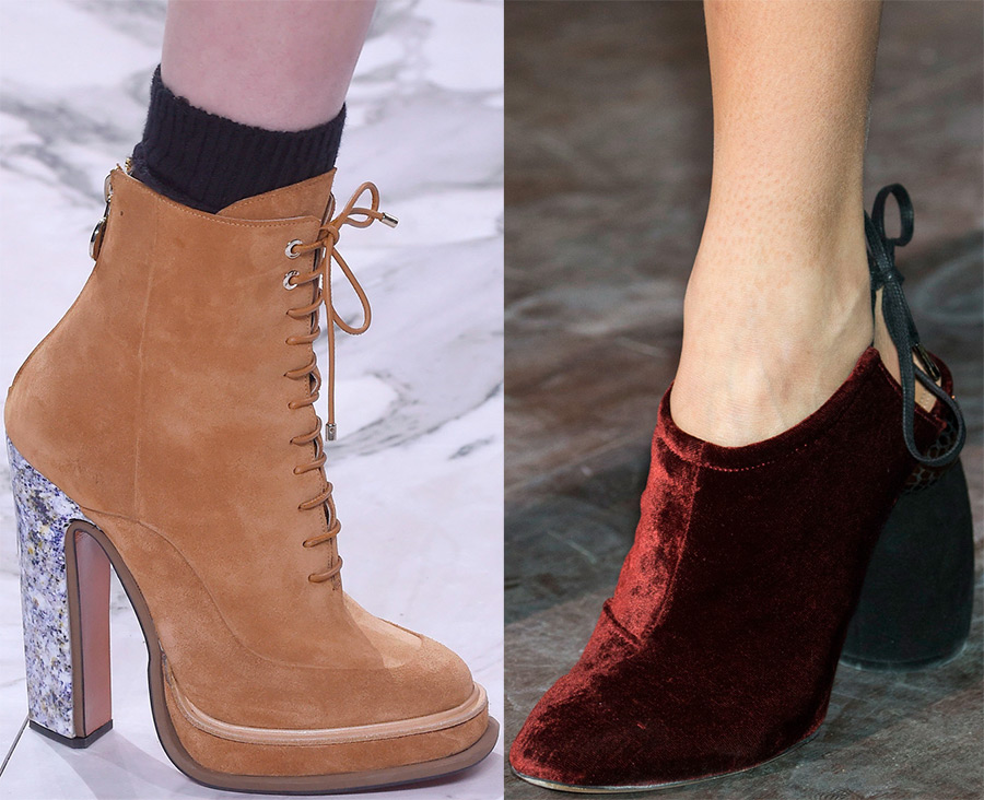 Les bottines luxueuses et élégantes des collections Charlotte Olympia et Prabal Gurung peuvent être portées avec une robe de cocktail ou même de soirée, et les bottines à lacets Tods avec un legging ou un jean skinny, ou avec une mini-jupe. Pour robes longues et jupes maxi, il est préférable de porter des bottines à talons hauts.