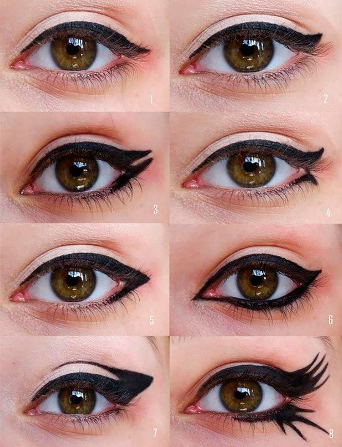 Pour de nombreux looks sombres d'Halloween, une technique de maquillage en flèche pointue fonctionnera. Tout d'abord, dessinez une flèche sur la paupière supérieure puis soulignez la paupière inférieure. Pour créer un effet de faux cils, complétez la flèche du bas avec des crêtes triangulaires acérées.
