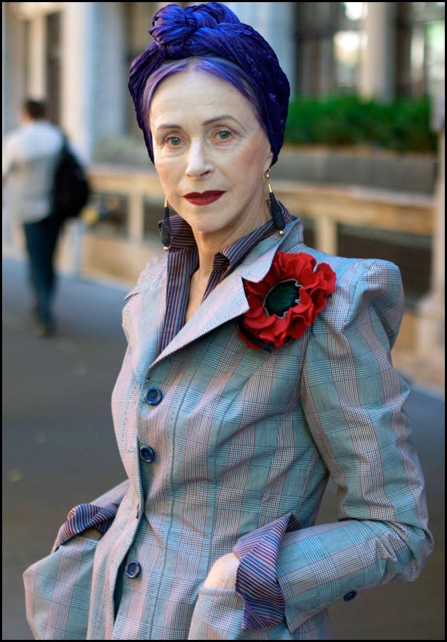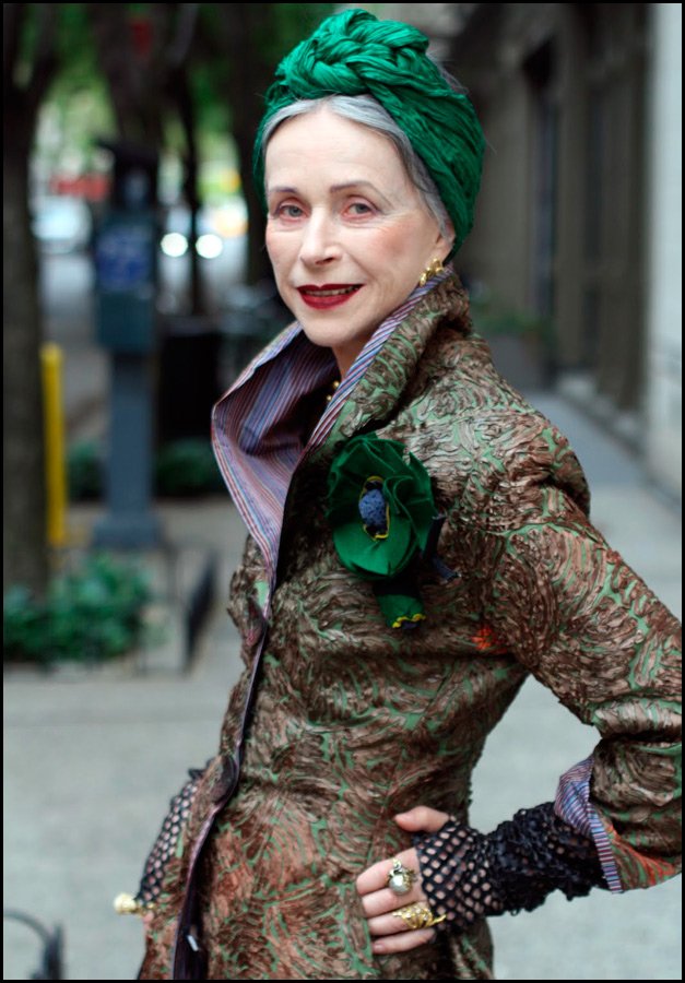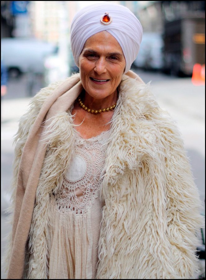 C'est ainsi que cet ancien coiffe d'Orient trouve sa place dans nos loges et flashe dans les rues des villes qui ne sont pas du tout orientales. Par exemple, regardez la photo où les propriétaires du turban sont des modèles très inhabituels. Au contraire, ce ne sont pas des modèles, mais simplement des femmes qui, malgré le temps qui passe, ne veulent pas céder et abandonner. Elles veulent toujours rester belles, féminines et élégantes.