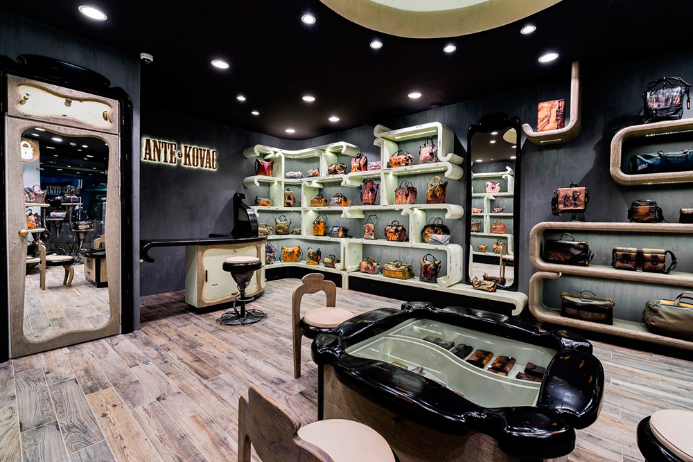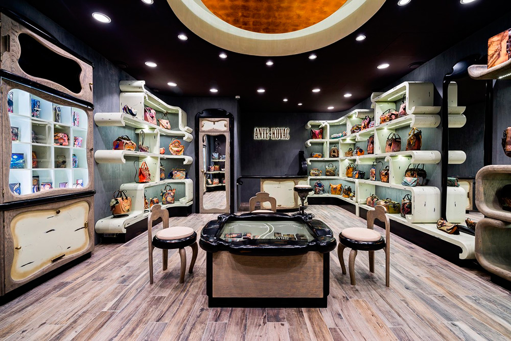 L'intérieur du showroom a également été réalisé par l'atelier Yann Moserbach, mais à cette époque le style Art Nouveau était absent dans les intérieurs de la marque, on peut donc retracer l'évolution de l'identité visuelle d'Ante Kovac.