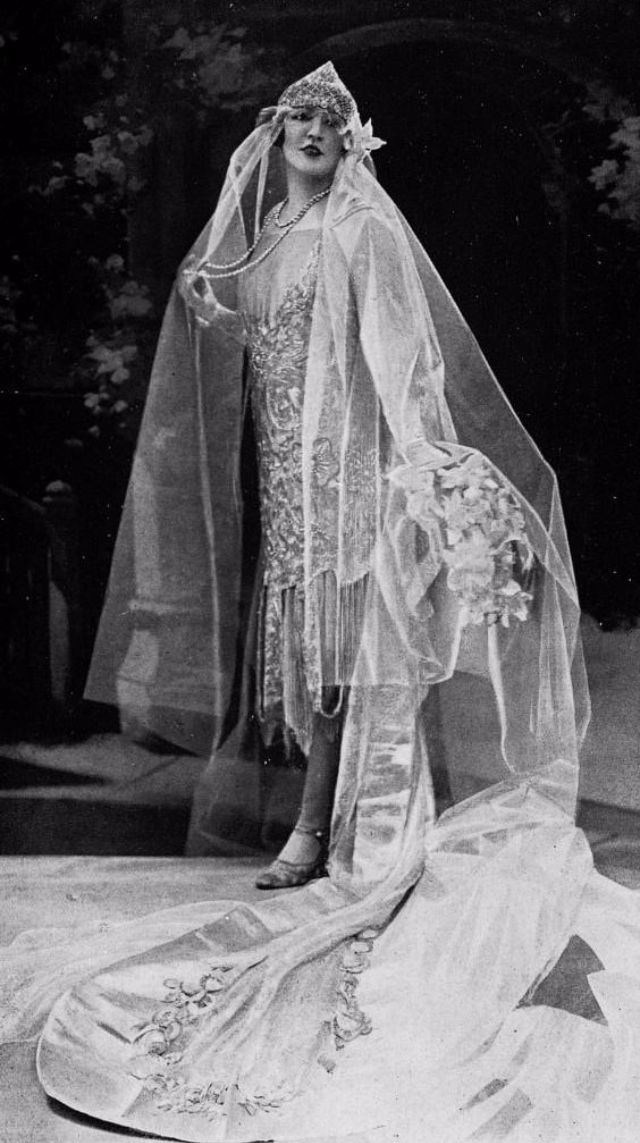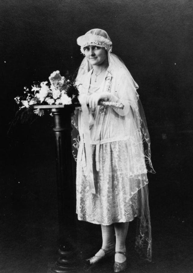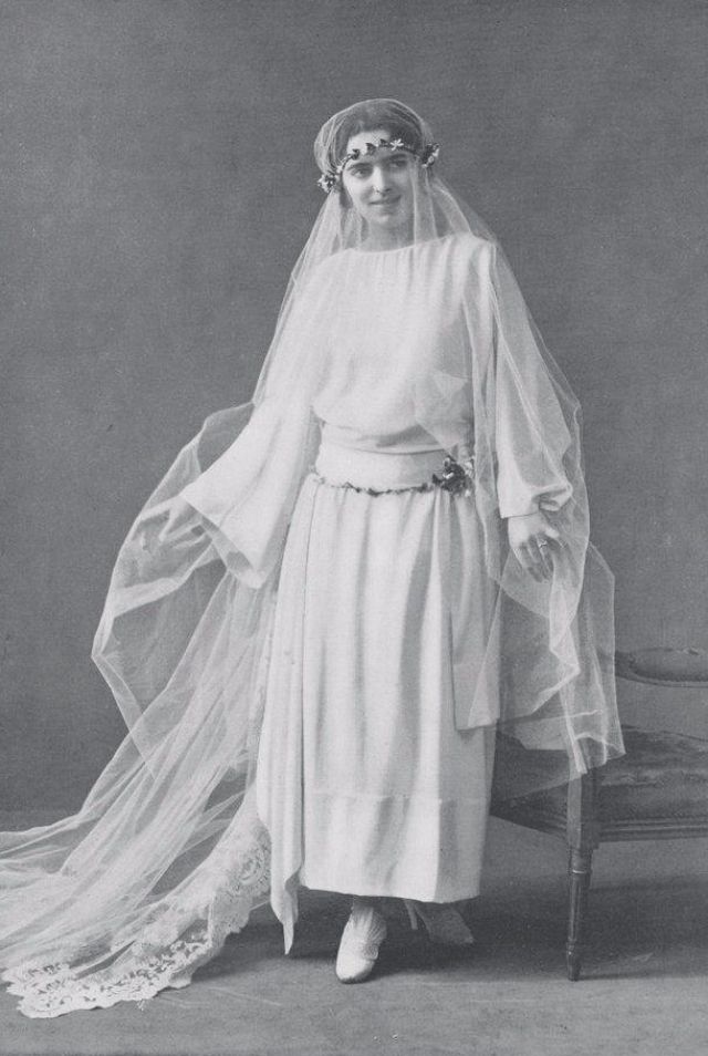 robes de luxe des années 1920... En Russie, en général, la situation était désastreuse, et en Europe et aux États-Unis, la plupart des gens vivaient plus que modestement. Par conséquent, les robes de mariée des mariées ordinaires ne pouvaient pas rayonner d'éclat, elles n'absorbaient que certaines des tendances de la mode de l'époque.