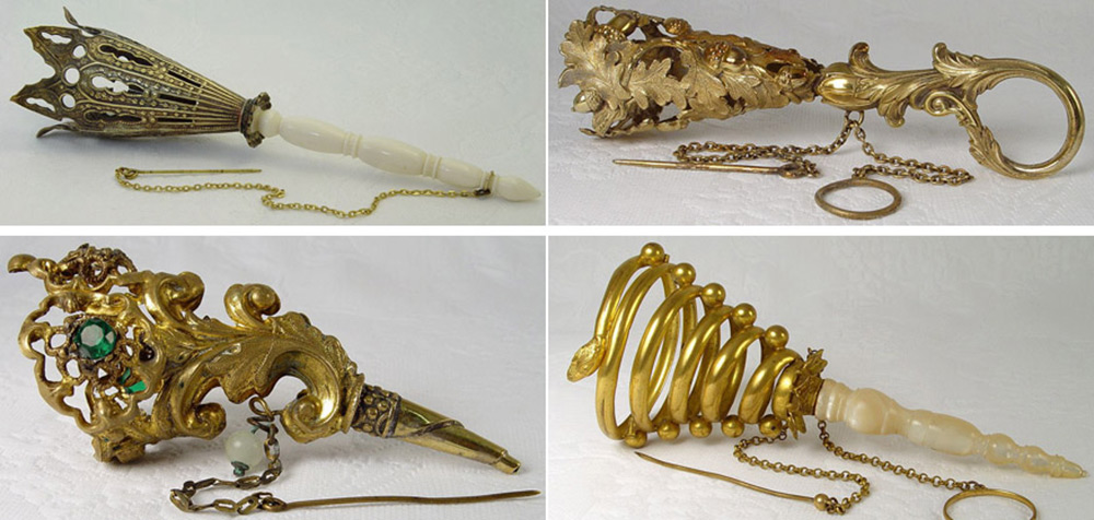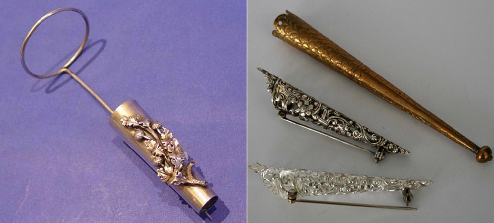 Les port-bouquets les plus complexes dans la conception avaient des pieds qui leur permettaient de se transformer en petits vases à fleurs.