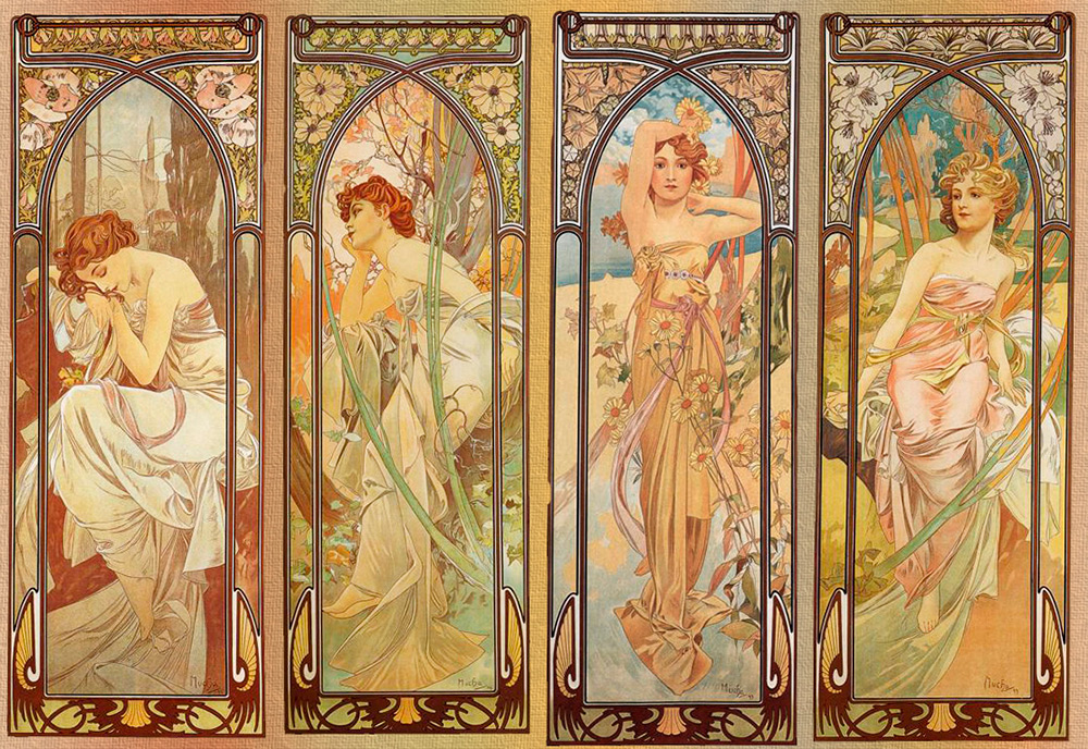 style moderne et le créateur de son propre style unique. Les "Femmes de la mouche" (images de saisons, d'heures de la journée, de fleurs, etc. dans des images féminines) sont connues dans le monde entier pour leur sensualité ouverte et leur grâce captivante.