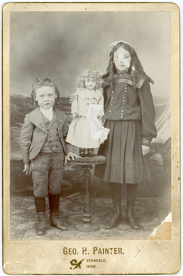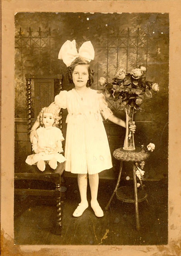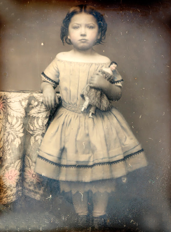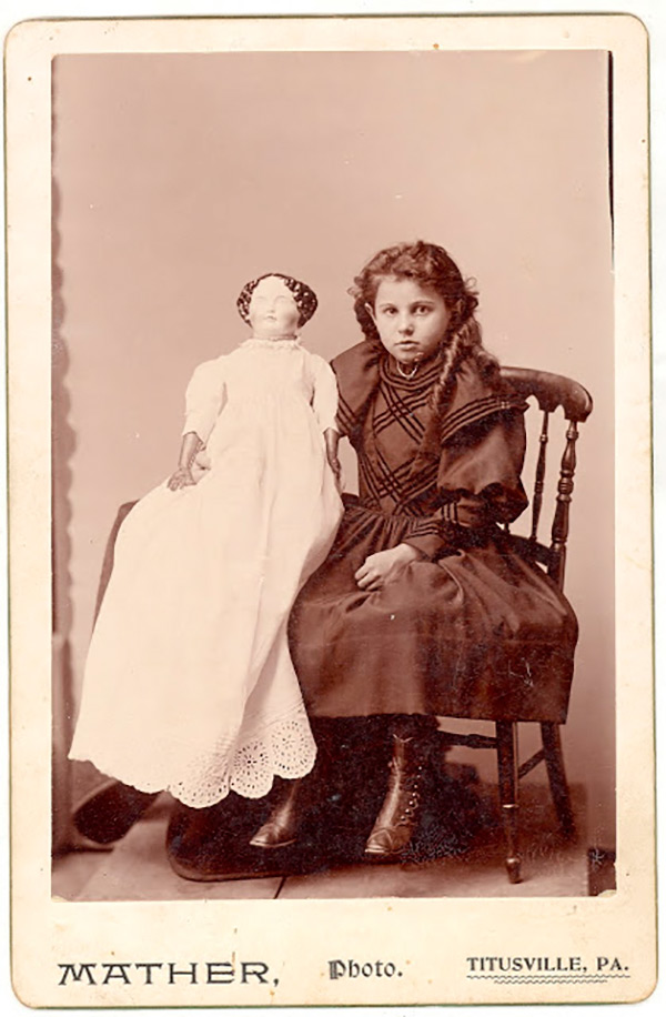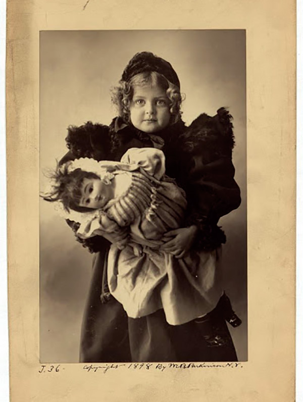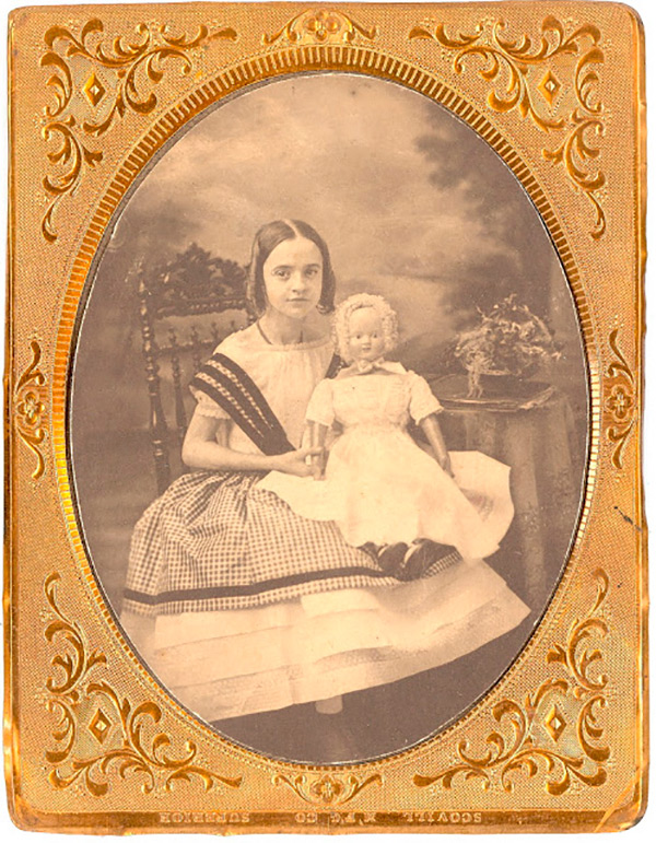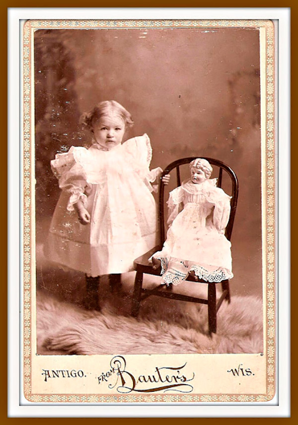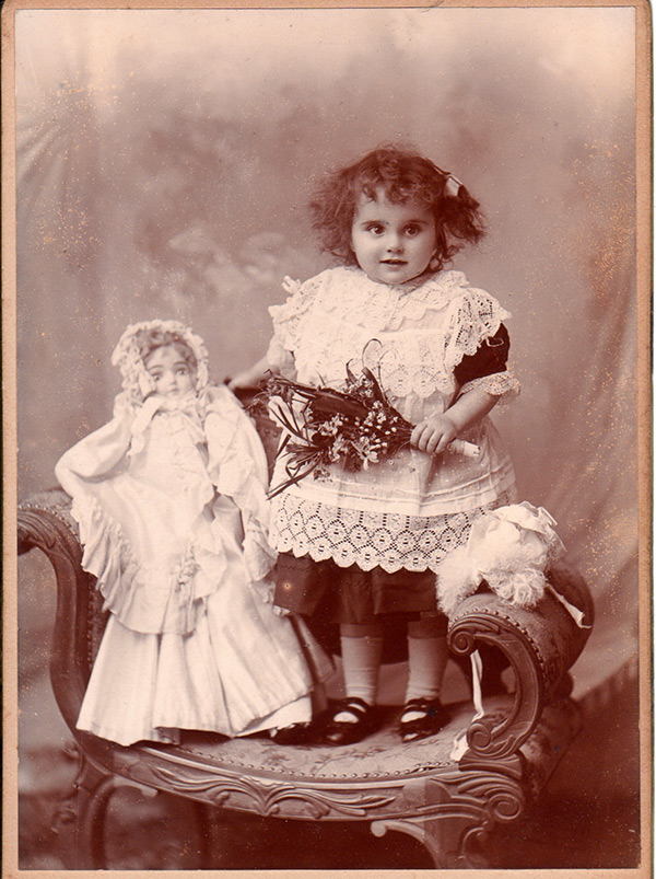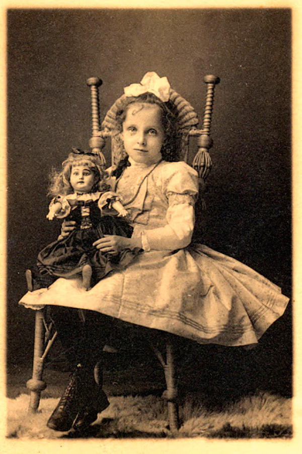 Poupées anciennes sur des photos d'époque