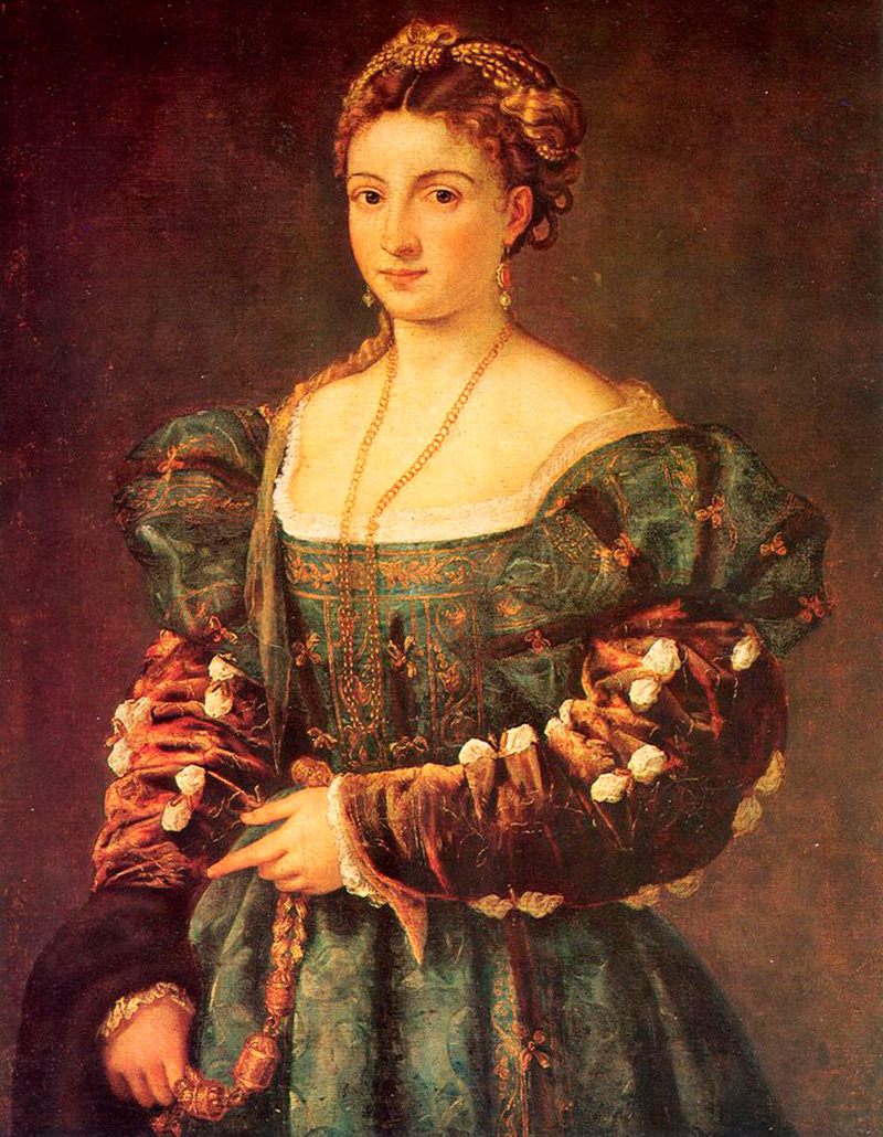 Surtout la mode pour les cheveux blonds se répandra à Venise. Les Vénitiens portaient même des chapeaux de paille sans fond, dans lesquels leurs cheveux étaient disposés sur le bord afin de brûler au soleil, ils acquièrent une teinte plus claire.