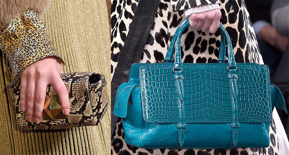 Sonia Rykiel et Anya Hindmarch ont opté pour des sacs colorés sur le thème des reptiles. L'imprimé prédateur reste en vogue, avec le léopard et les reptiles en tête.
