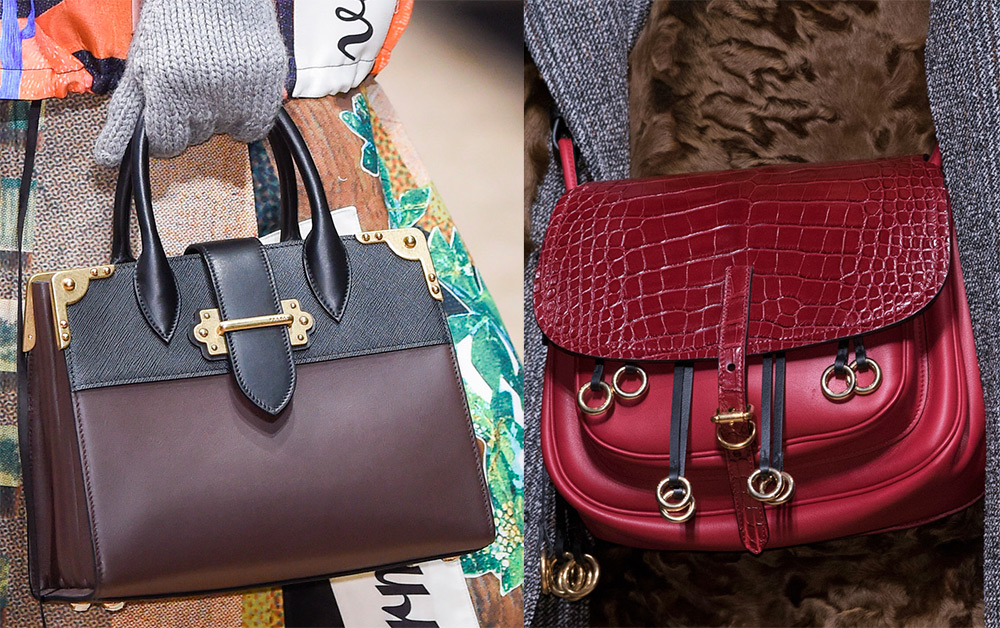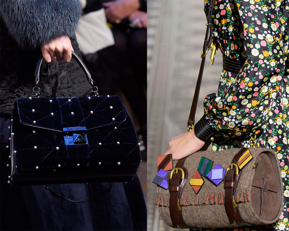 Ici, semble-t-il, il n'y a aucun doute - en premier lieu la peau et son imitation. Et en effet c'est le cas. Mais, surtout, comment ce matériel est-il présenté dans les sacs ? Les caractéristiques de chaque produit peuvent être soulignées par un habillage en cuir, des imprimés, des combinaisons de différents types de cuir, un tissu avec une texture d'ameublement et un imprimé correspondant, du denim, du velours, du daim et même de la maille ou du feutre.