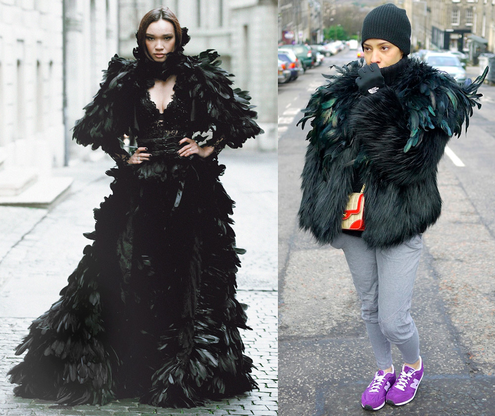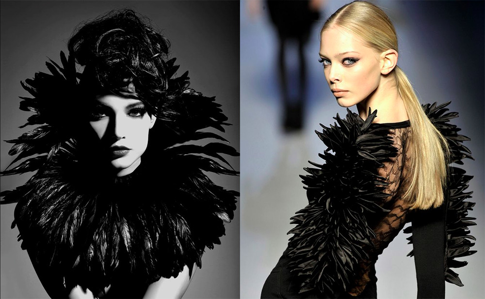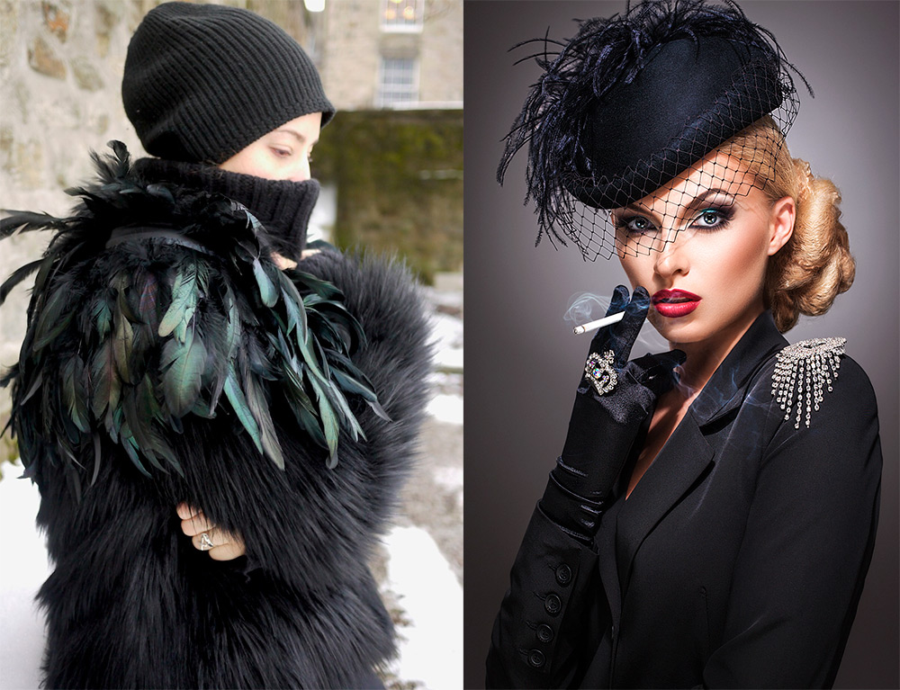 Si vous recherchez un look sombre, le corbeau peut être une source d'inspiration. Vous pouvez utiliser l'image d'un corbeau sous forme d'imprimé ou de broderie, vous pouvez décorer des accessoires avec les plumes d'un vrai corbeau, et si vous le voulez vraiment, vous pouvez utiliser un vrai corbeau vivant pour une séance photo.