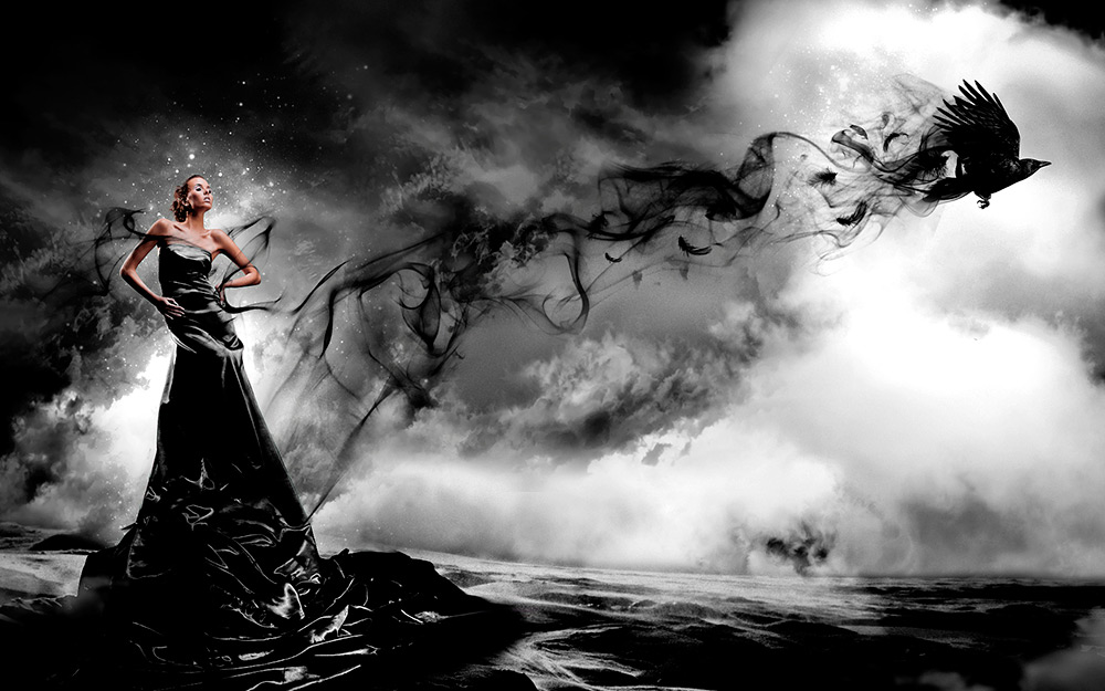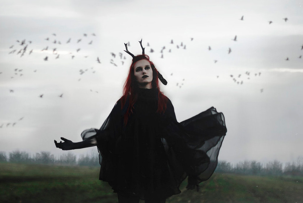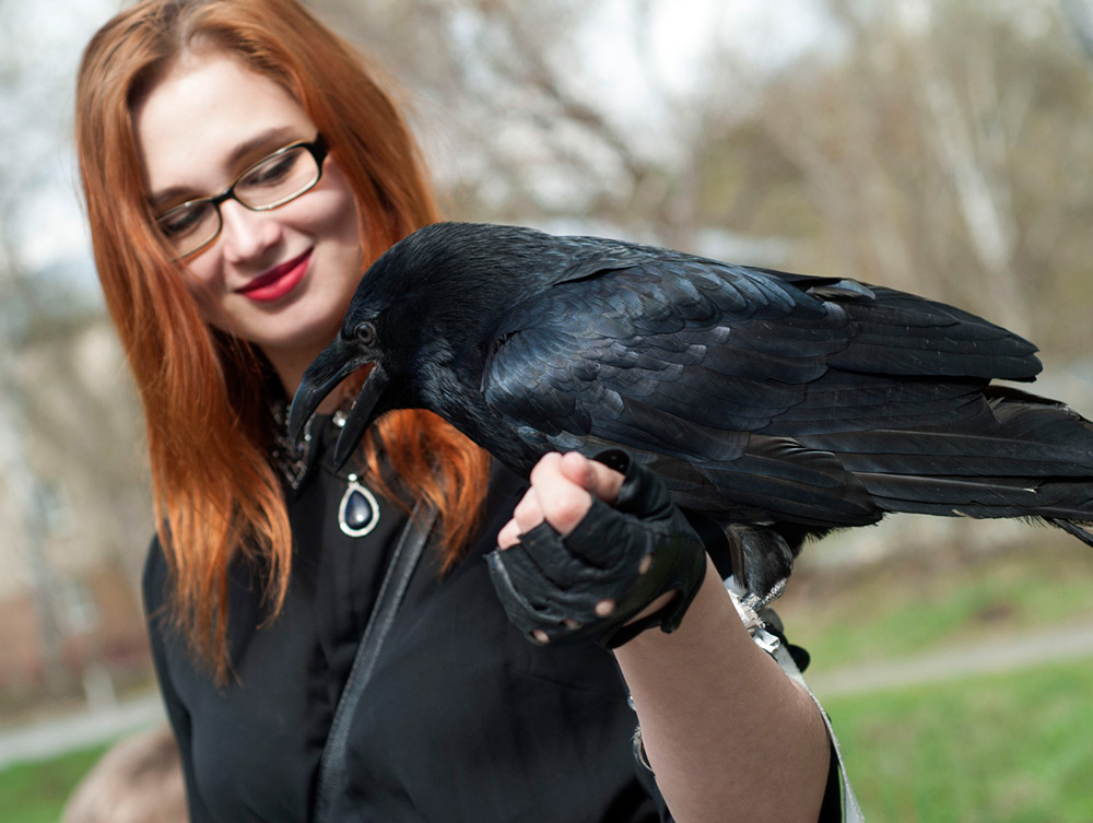 séances photo dans un style mystique et gothique... Les corbeaux sont considérés comme des symboles du chaos et des ténèbres qui ont précédé la lumière de la création. Et le corbeau est un oiseau méchant, il s'efforce toujours de mordre dans l'oeil, alors soyez prudent lors de la séance photo...